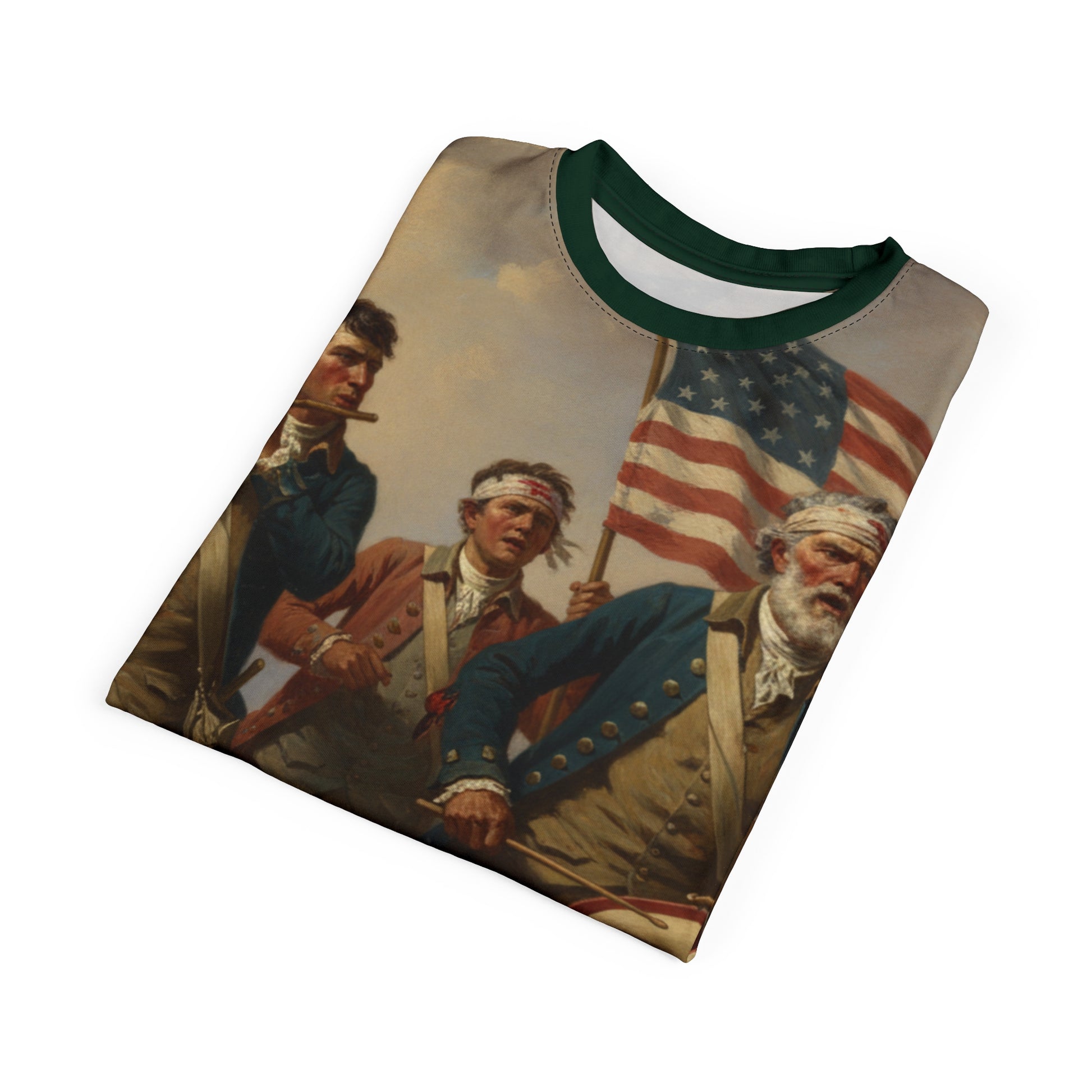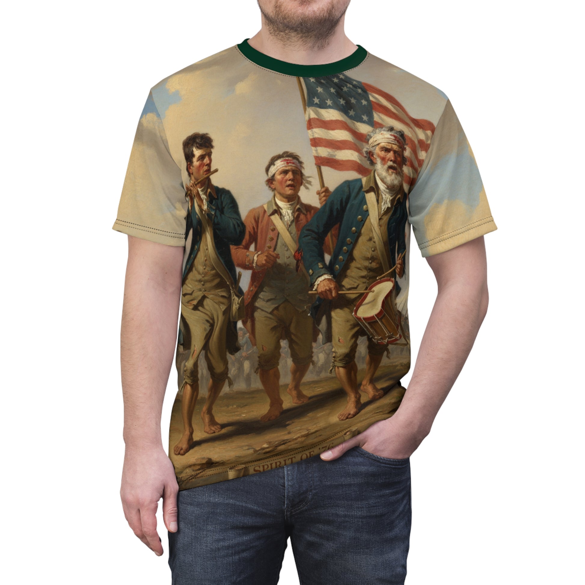 Whether you're a history enthusiast, proud patriot, or looking for a meaningful gift for a veteran or military family member, this all-over print shirt makes a bold statement. The Spirit of '76 imagery represents the courage and determination that founded our nation, making this more than just apparel—it's wearable American history.