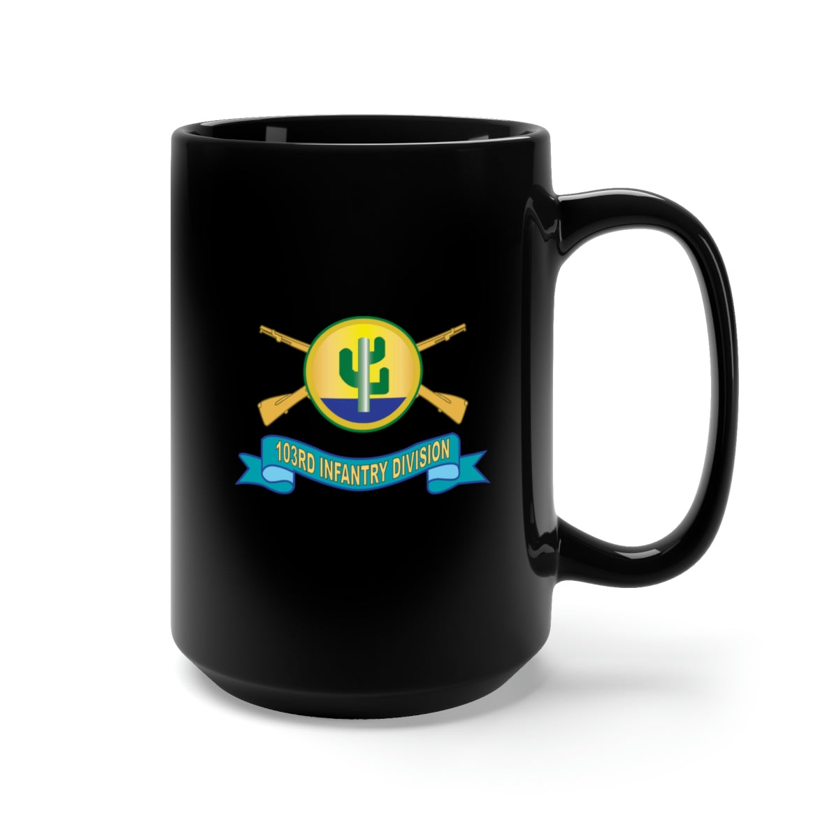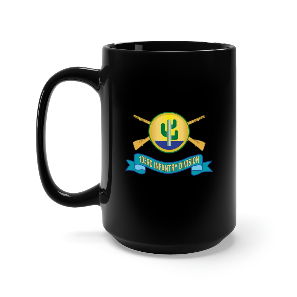 Black Mug 15oz - 103rd Infantry Division w Br - SSI - Ribbon X 300