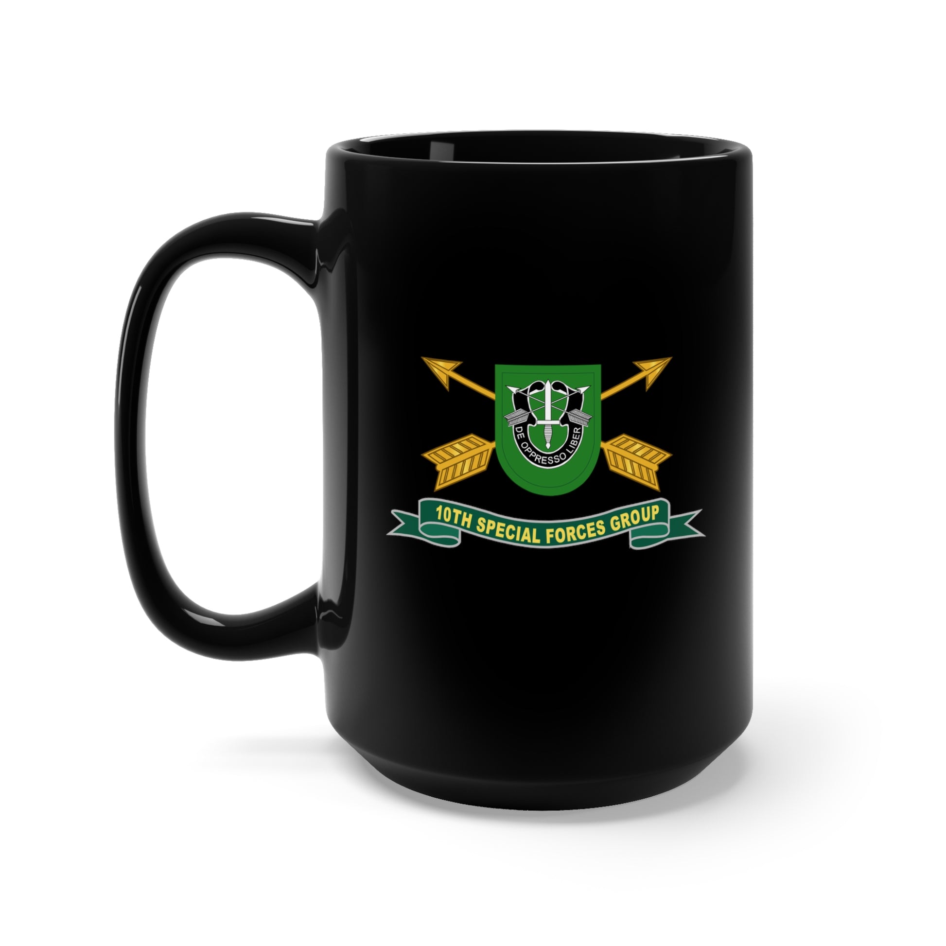 Black Mug 15oz - 10th Special Forces Group - Flash w Br - Ribbon X 300