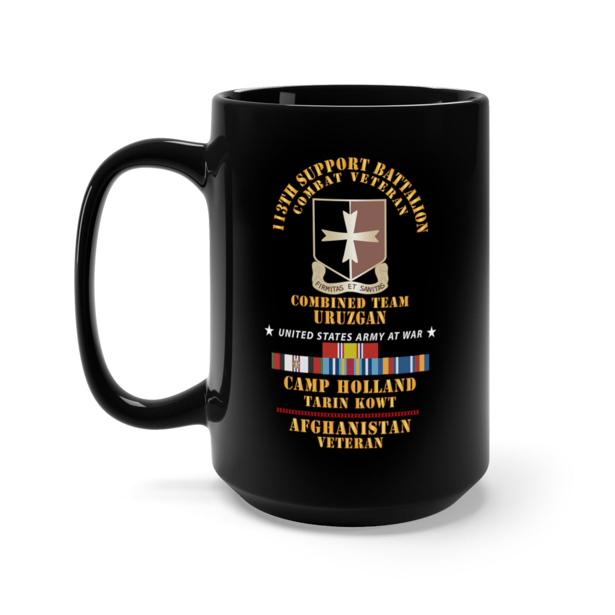 Black Mug 15oz - 113th Support Battalion - Camp Holland Afghanistan Vet w AFGHAN SVC X 300