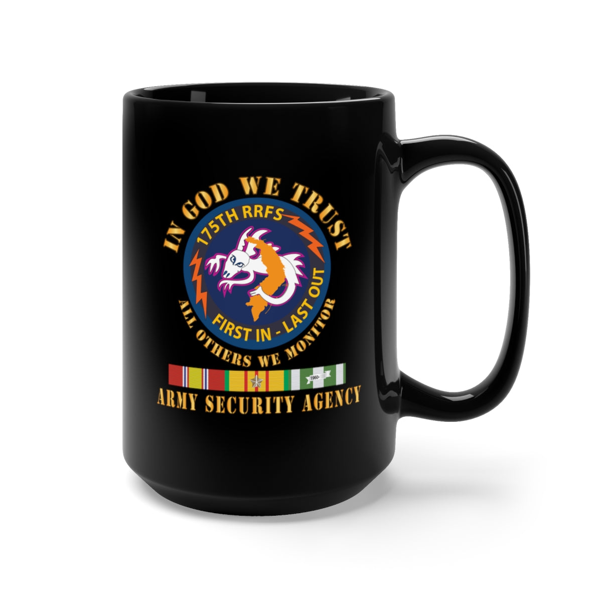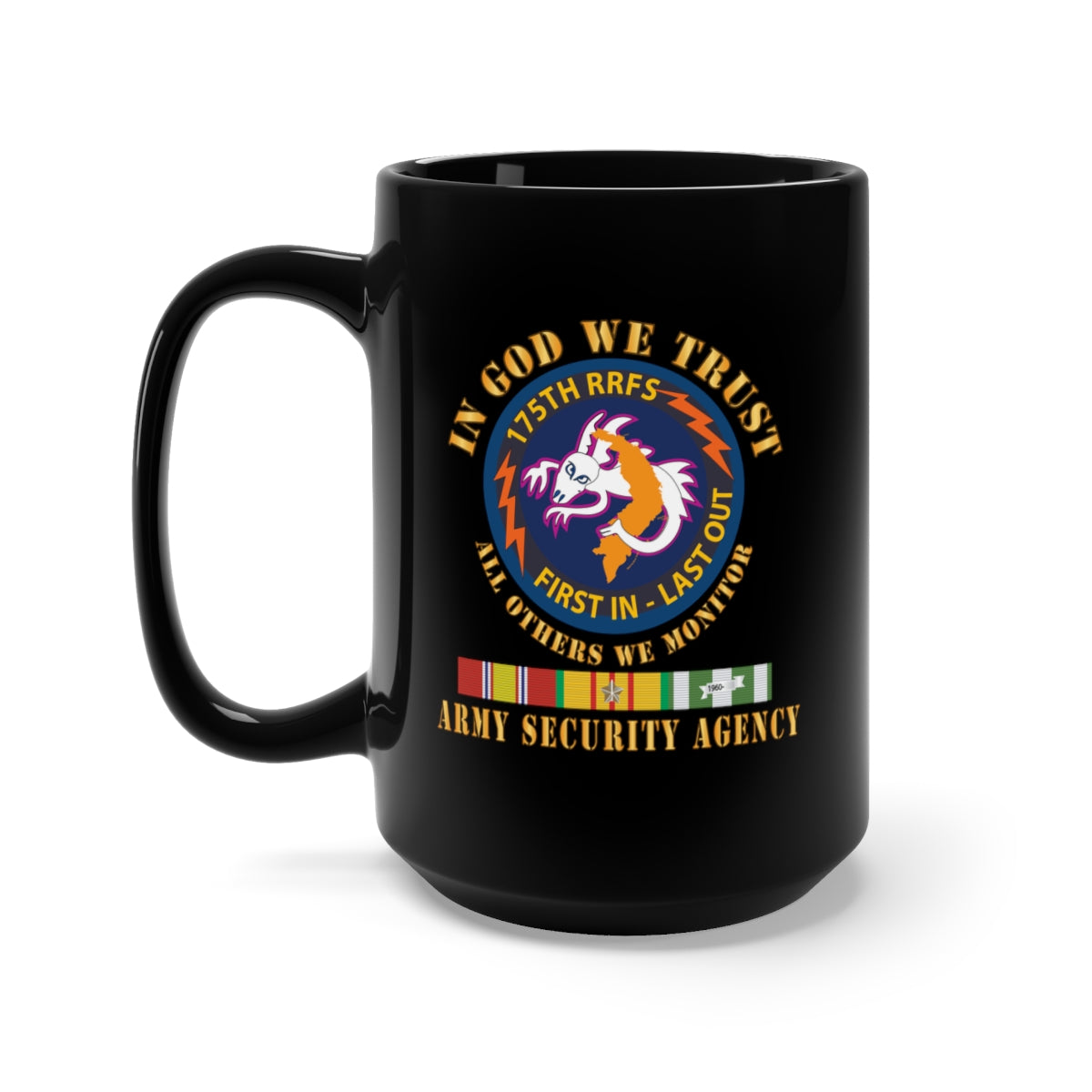 Black Mug 15oz - 176th RRFS - First In Last Out - SSI - In God we Trust - ASA w Vn Svc X 300