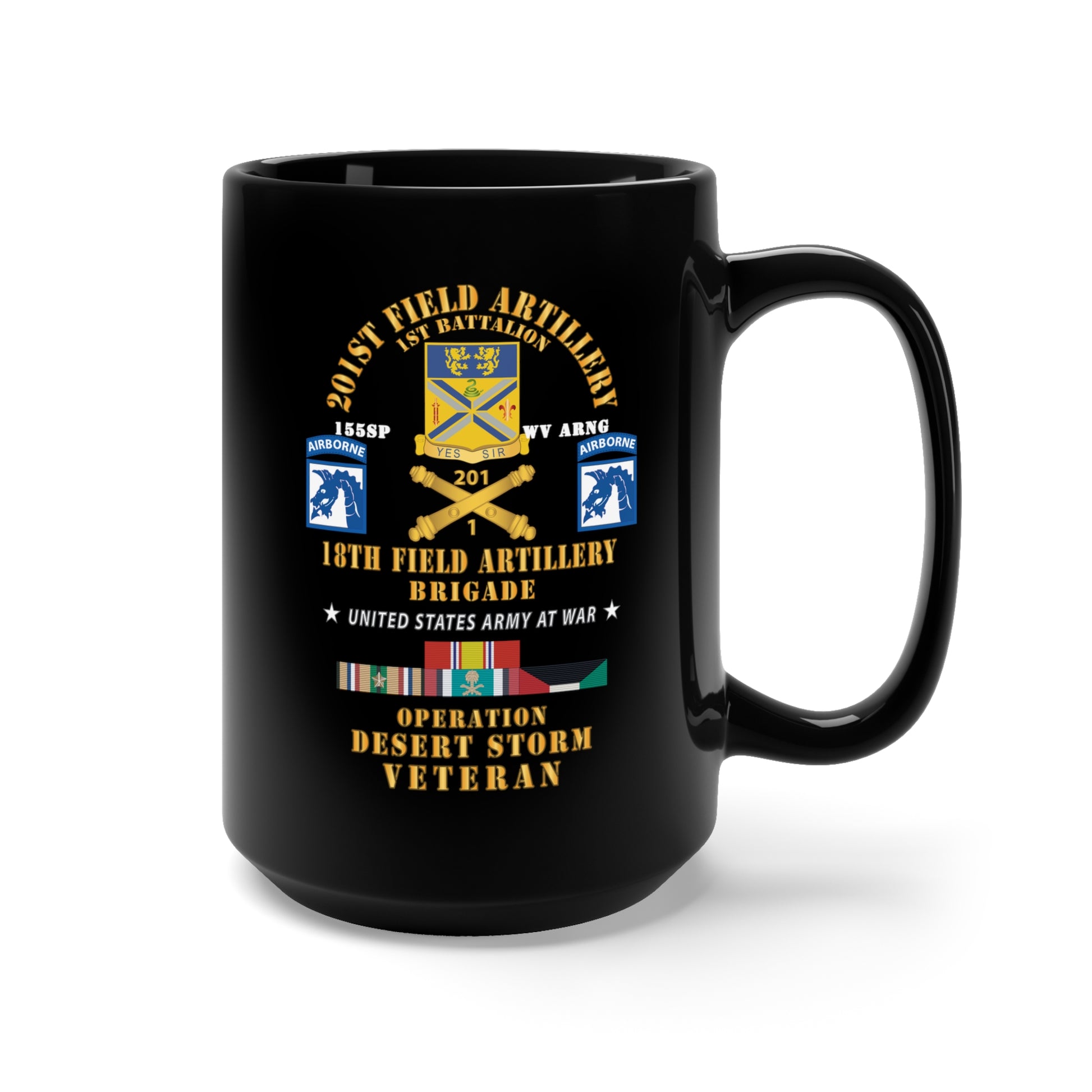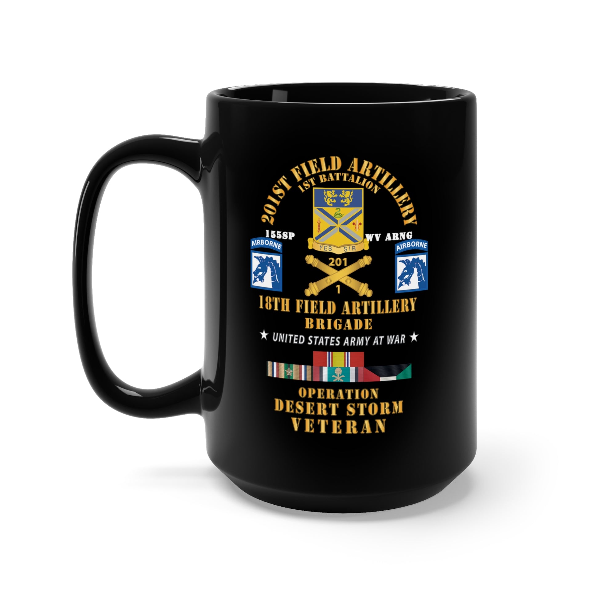 Black Mug 15oz - 1st Battalion, 201st Artillery, XVIII Abn Corps - Operation Desert Storm Veteran X 300