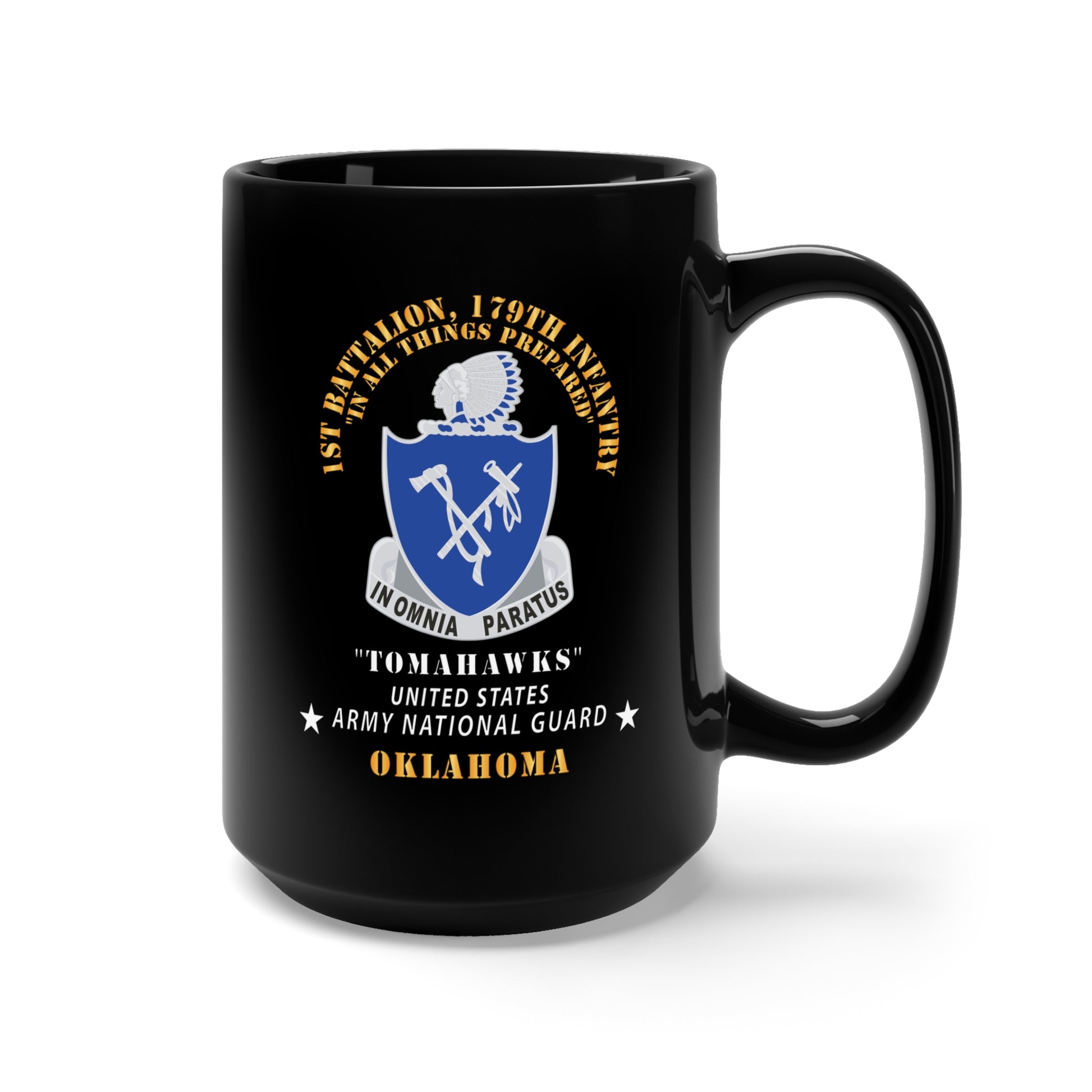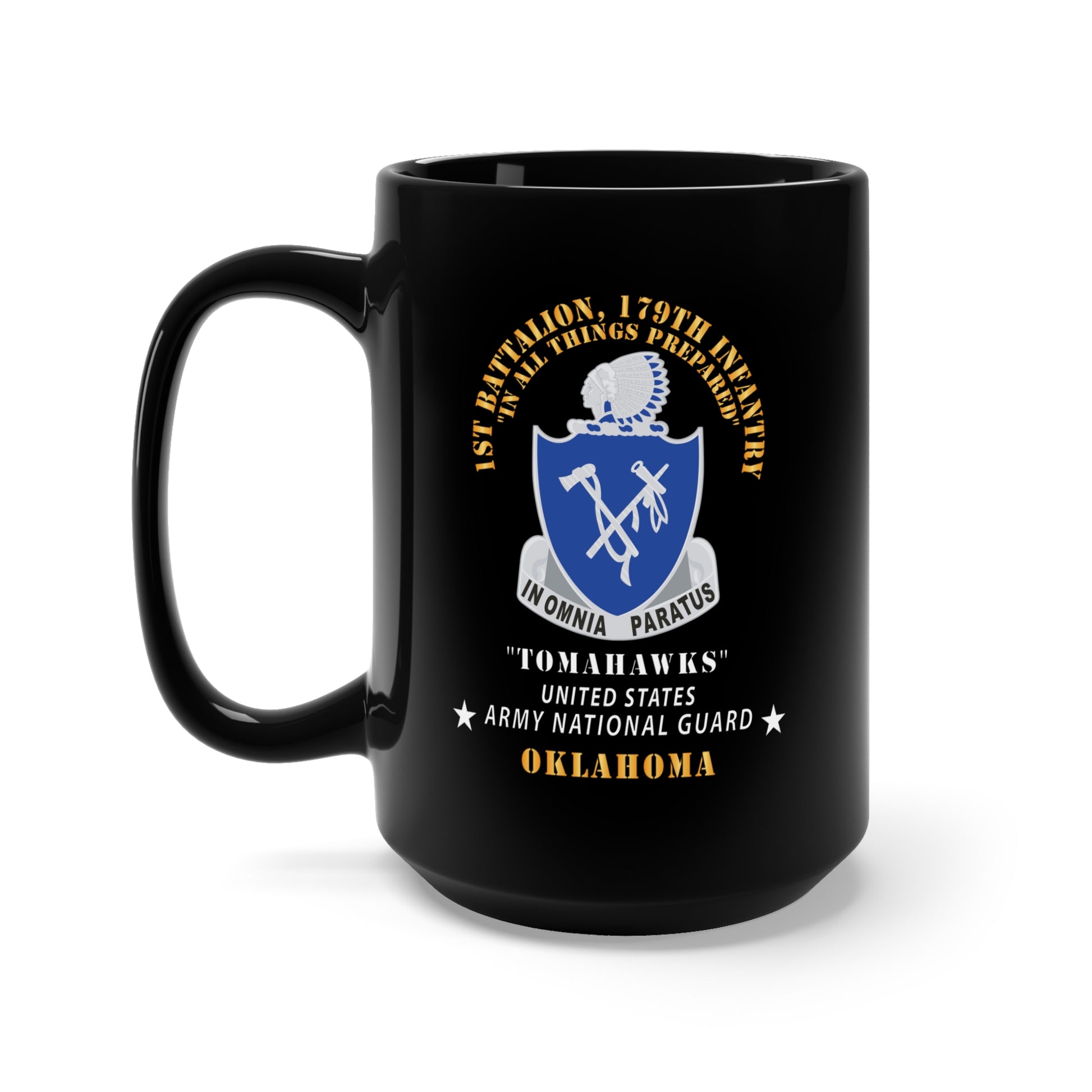 Black Mug 15oz - 1st Bn, 179th Infantry - Tomahawks - Army National Guard, OK X 300