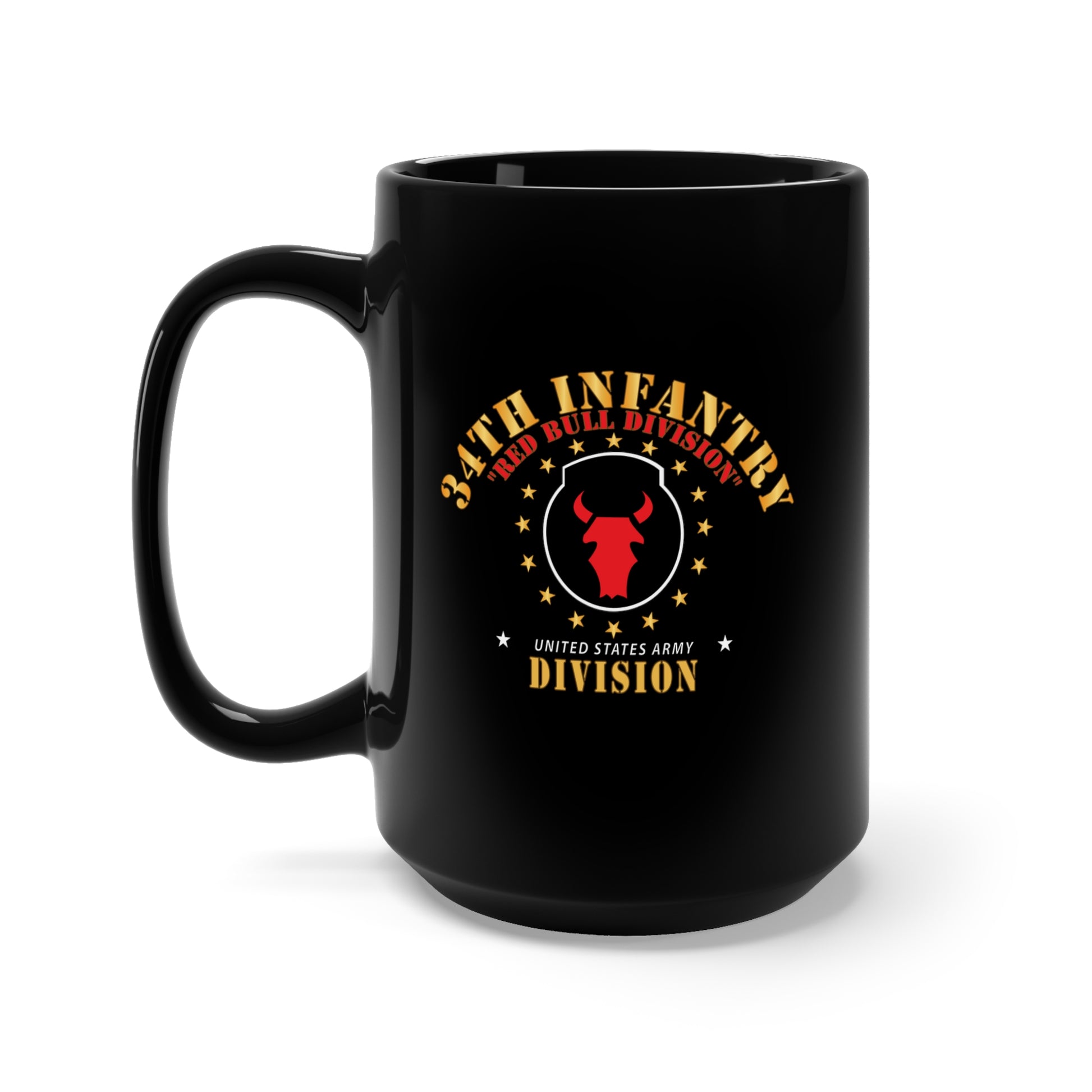 Black Mug 15oz - 34th Infantry Division - Red Bull Division at War X 300