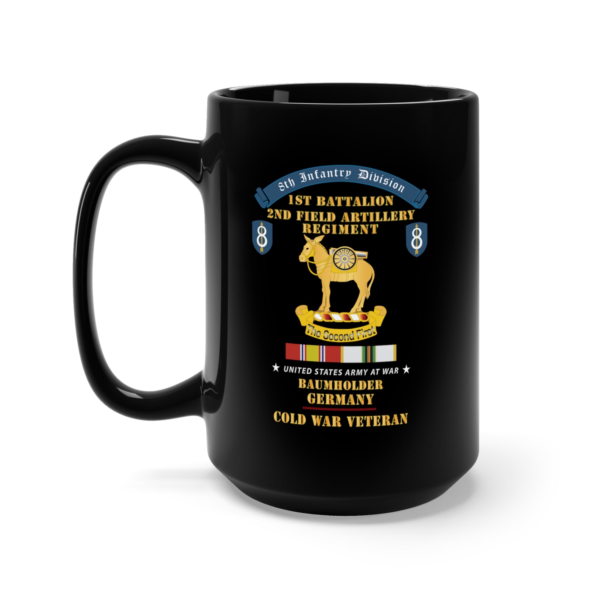 Black Mug 15oz - 8th Infantry Division Scroll - 1st Bn, 2nd Field Artillery Regiment - Baumholder Germany - Cold War Vet w COLD SVC X 300