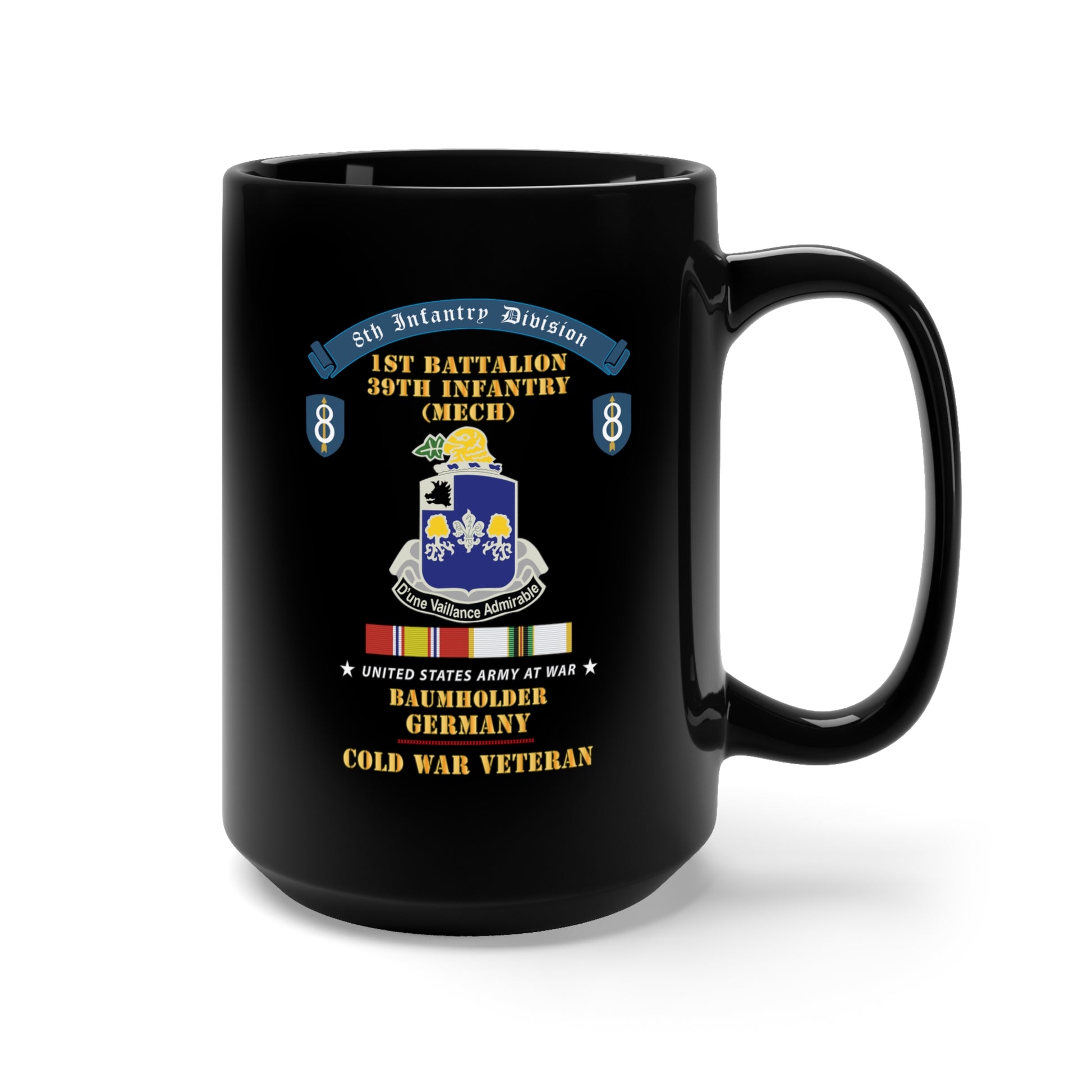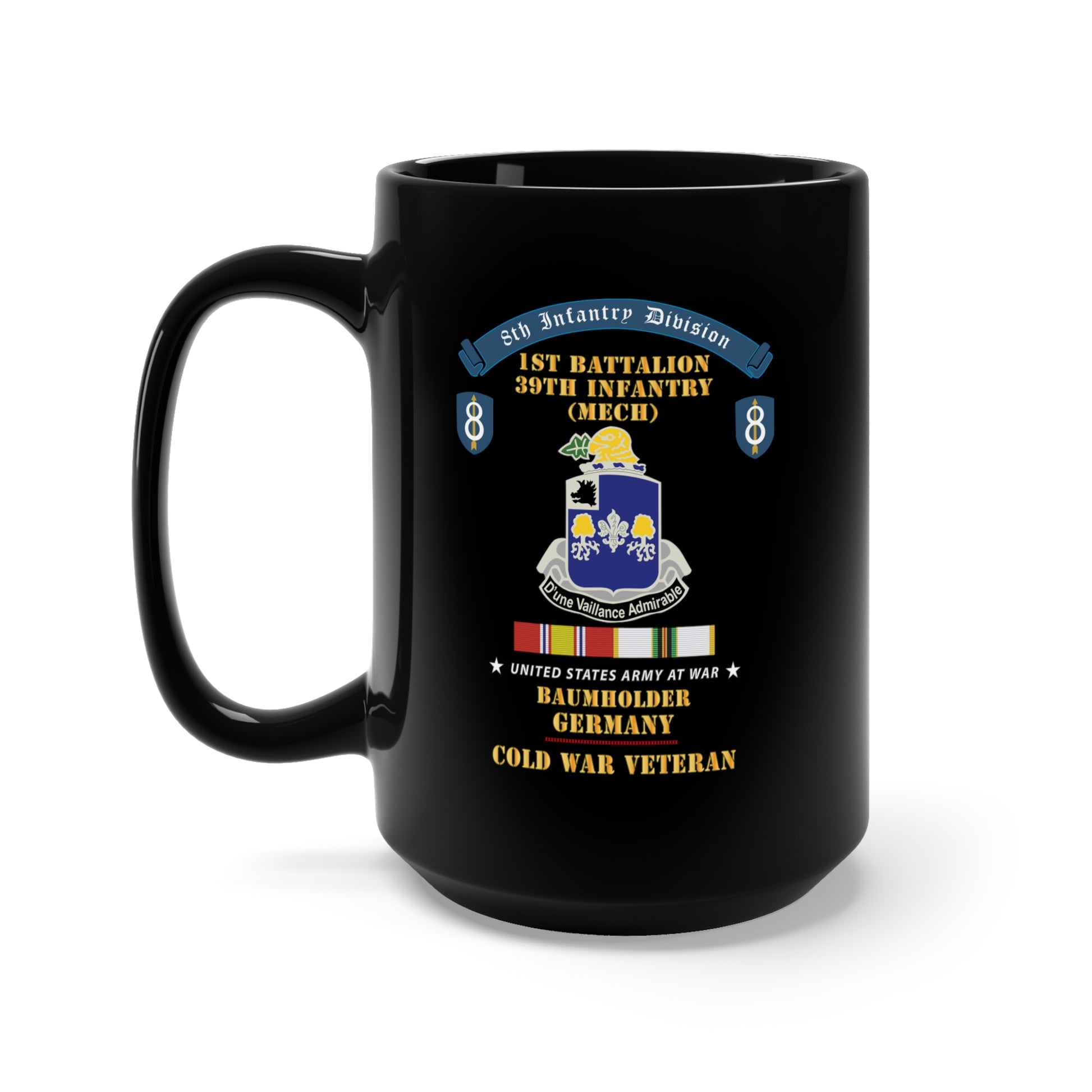 Black Mug 15oz - 8th Infantry Division Scroll - 1st Bn 39th Infantry (Mech) - Baumholder Germany - Cold War Vet w COLD SVC X 300