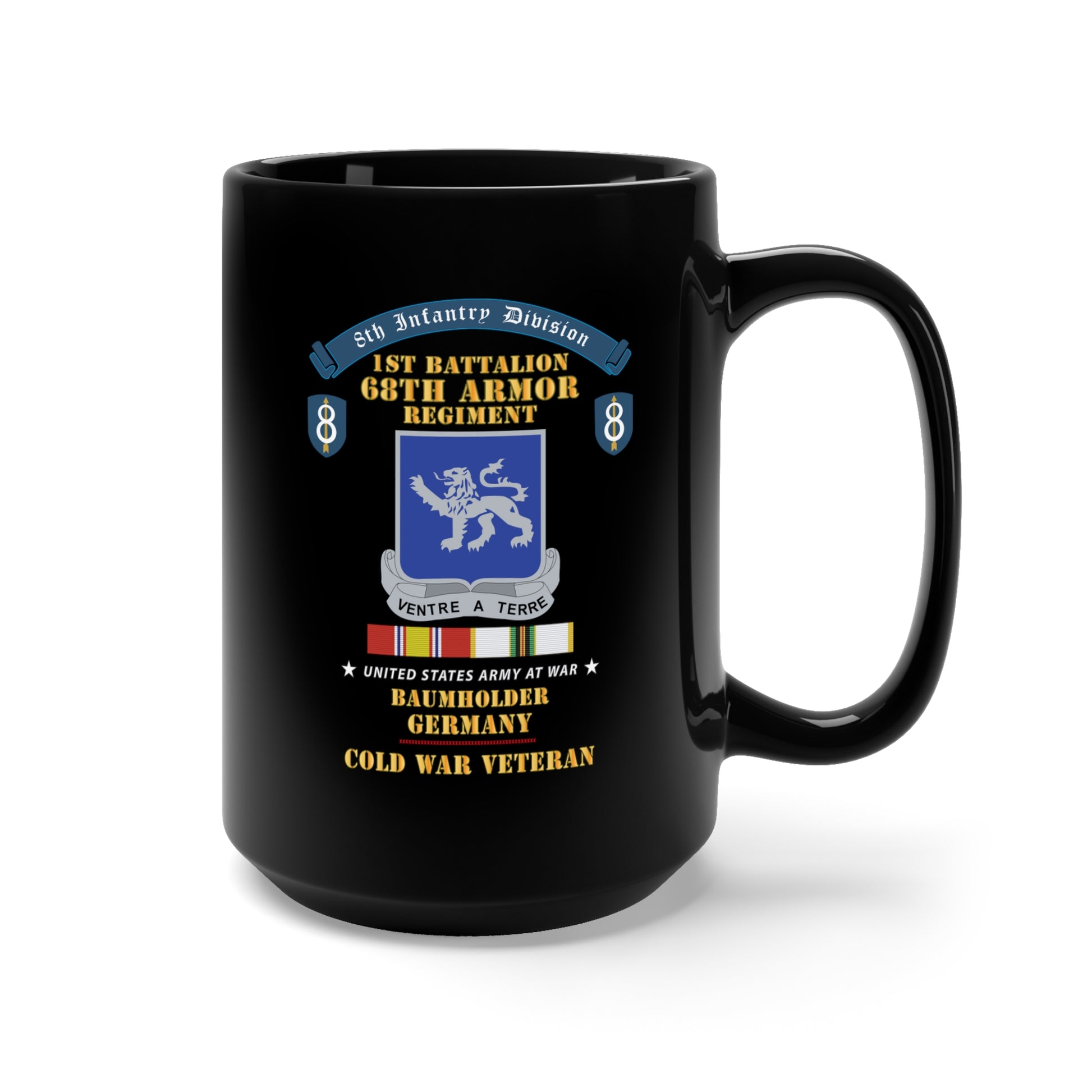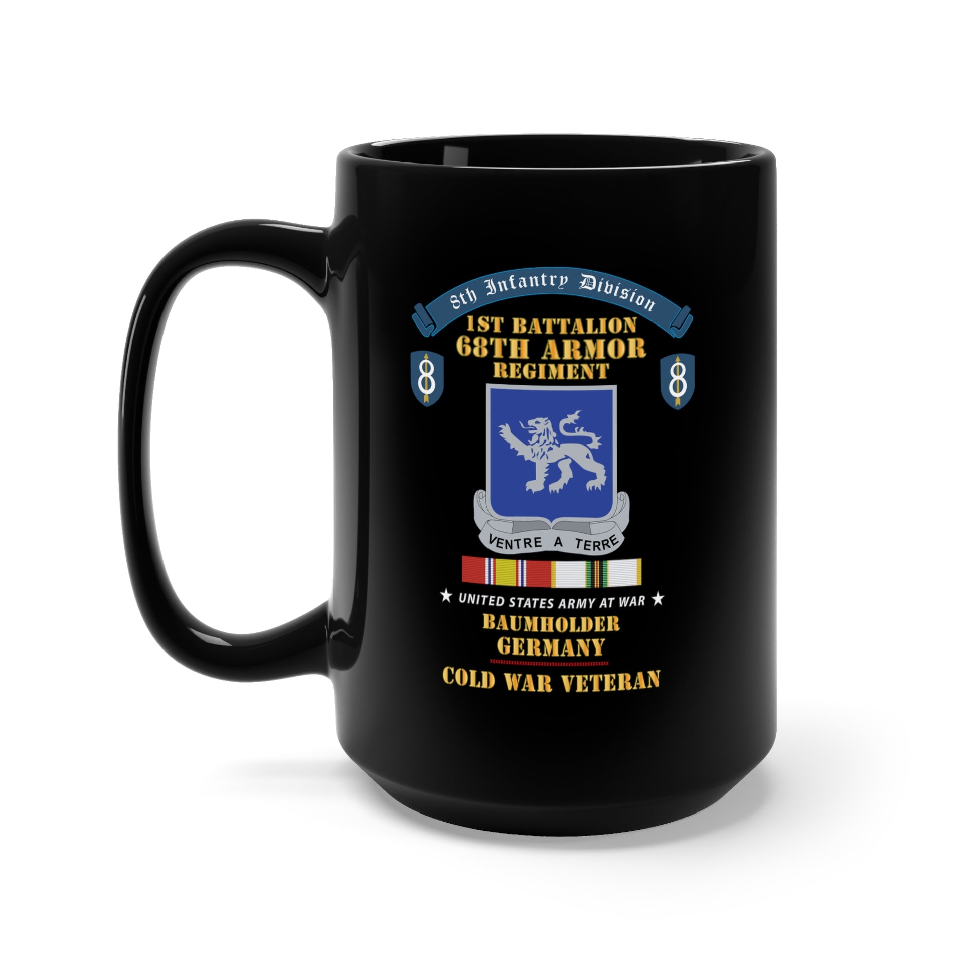 Black Mug 15oz - 8th Infantry Division Scroll - 1st Bn 68th Armor Regiment - Baumholder Germany - Cold War Vet w COLD SVC X 300
