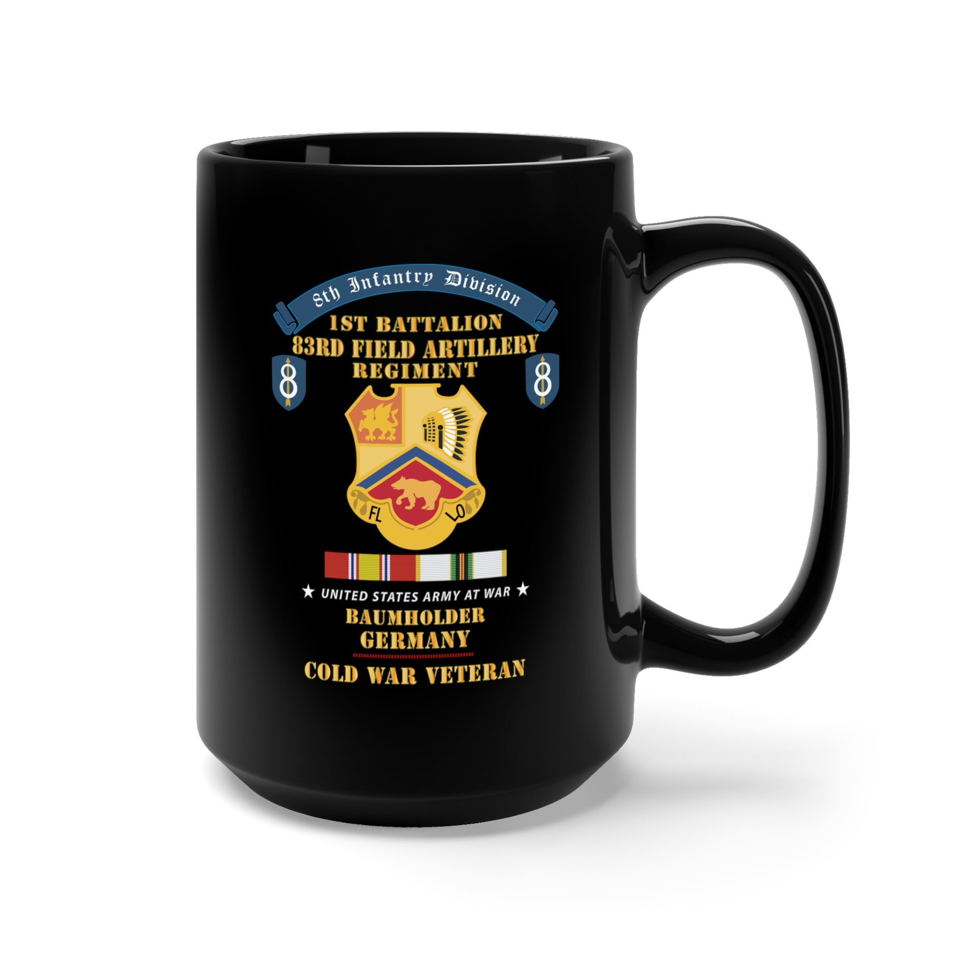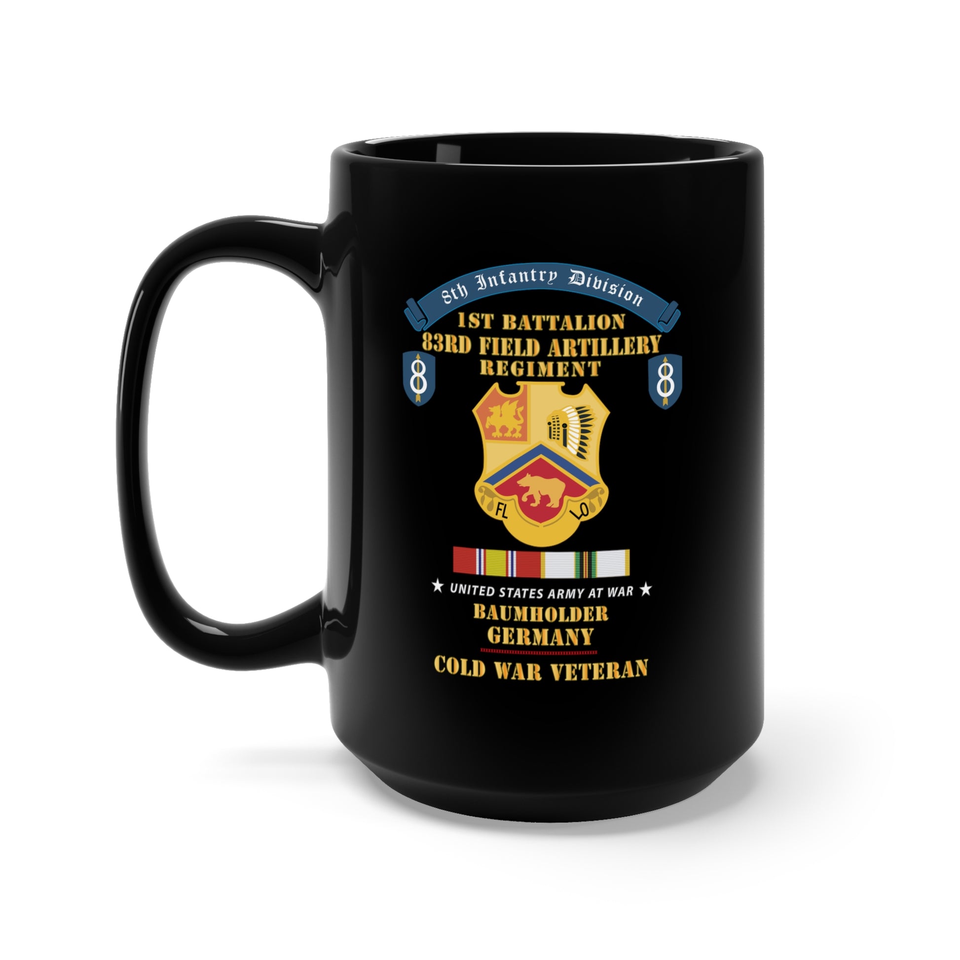 Black Mug 15oz - 8th Infantry Division Scroll - 1st Bn, 83rd Field Artillery Regiment - Baumholder Germany - Cold War Vet w COLD SVC X 300