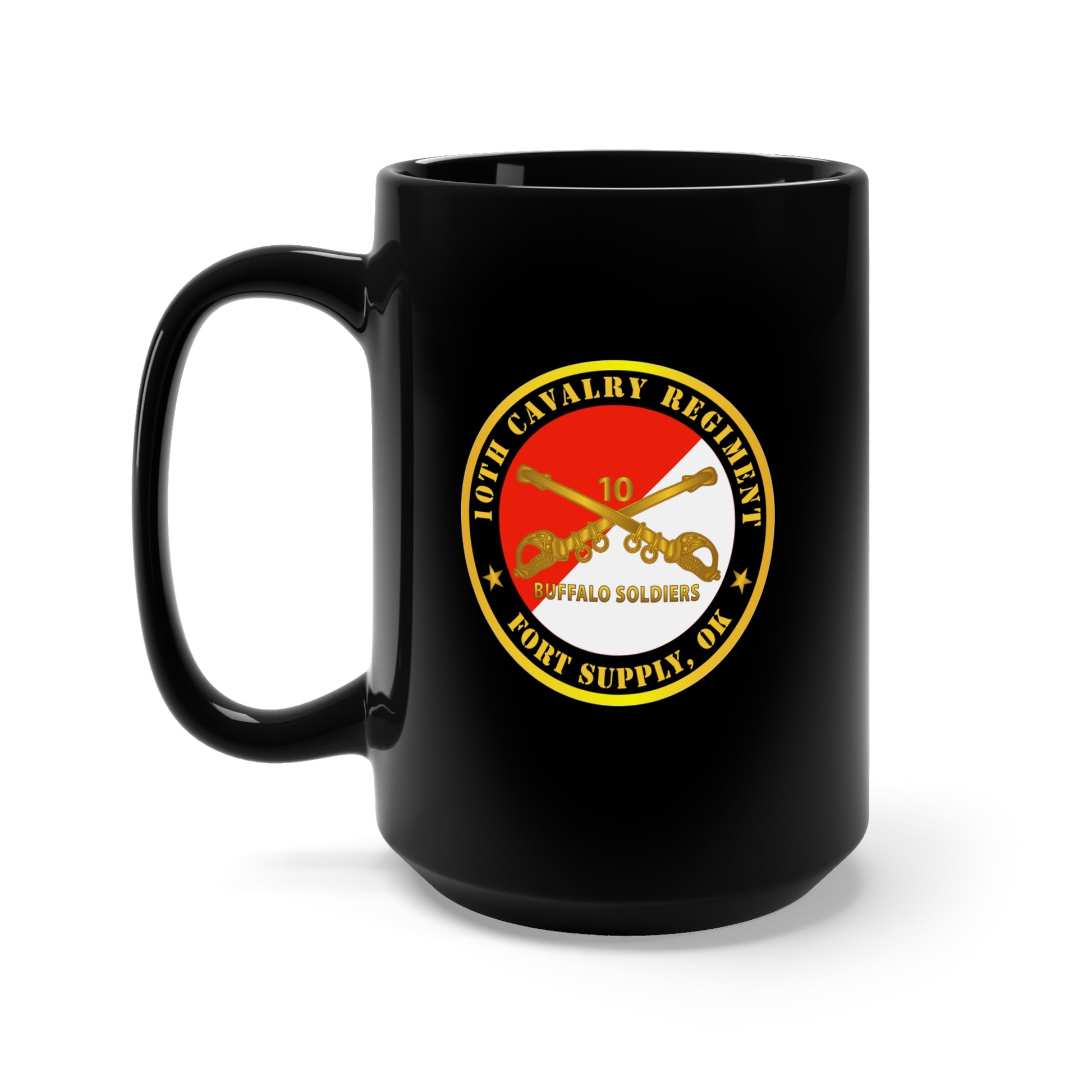 Black Mug 15oz - Army - 10th Cavalry Regiment - Fort Supply, OK - Buffalo Soldiers w Cav Branch