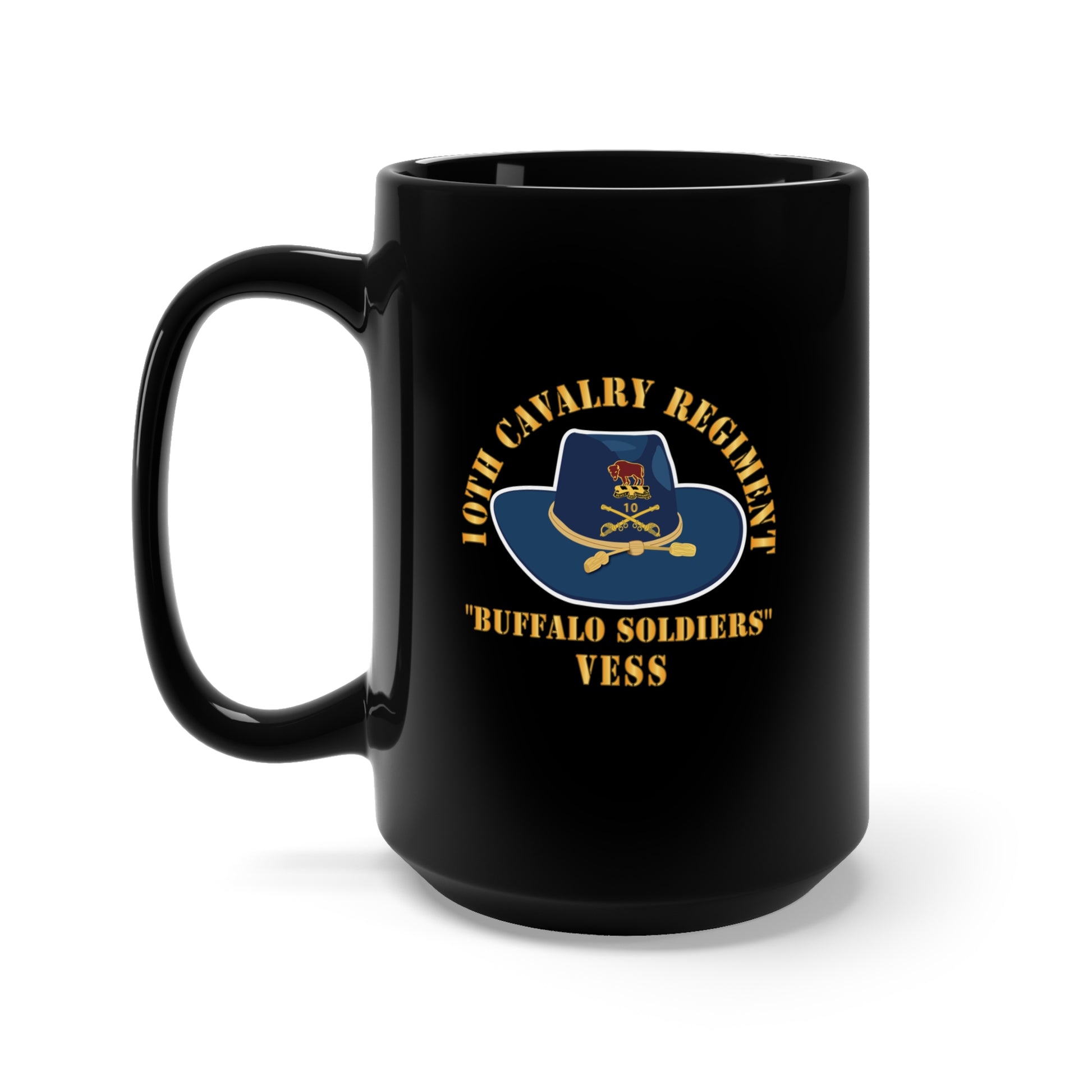 Black Mug 15oz - Army - 10th Cavalry Regiment w Cav Hat - Buffalo Soldiers