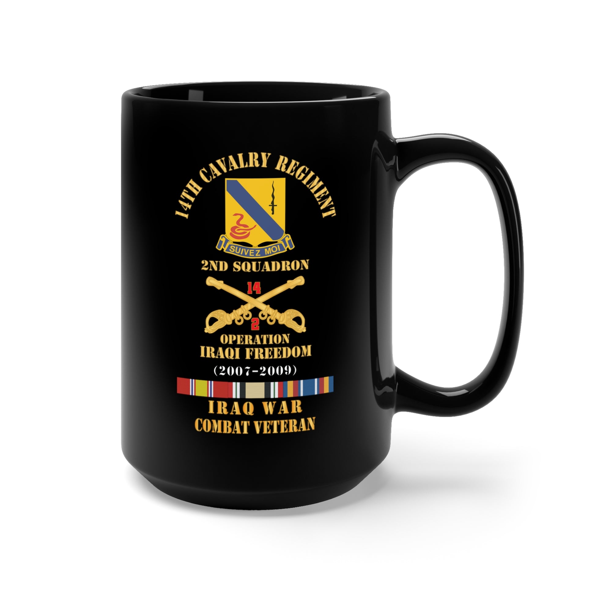Black Mug 15oz - Army - 14th Cavalry Regiment w Cav Br - 2nd Squadron - OIF - 2007-2009 - Red Txt Cbt Vet w IRAQ SVC X 300
