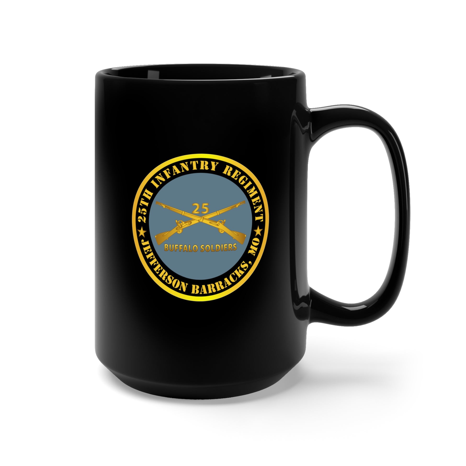 Black Mug 15oz - Army - 25th Infantry Regiment - Jefferson Barracks, MO - Buffalo Soldiers w Inf Branc