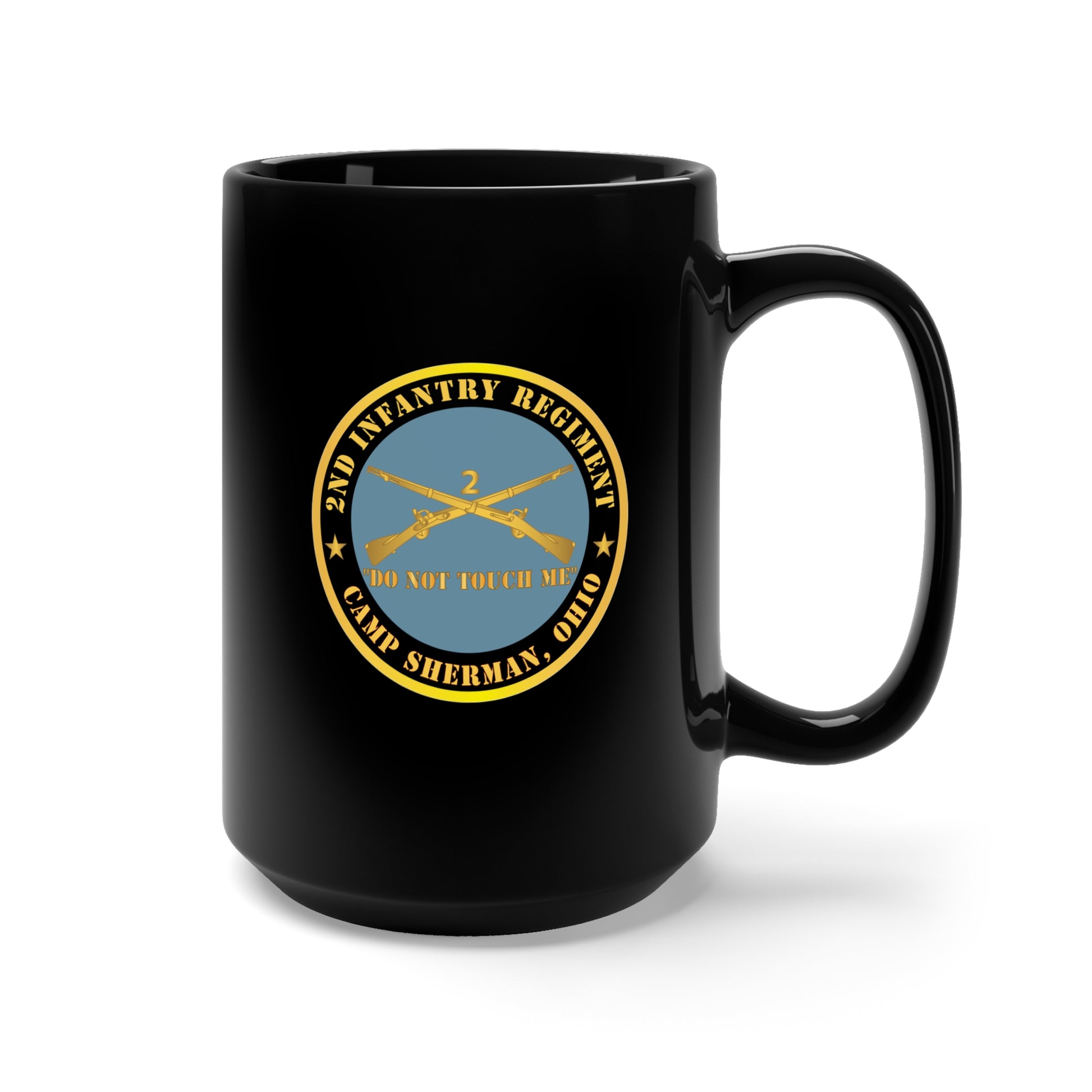 Black Mug 15oz - Army - 2nd Infantry Regiment Branch - Do Not Touch Me - Camp Sherman, Ohio X 300