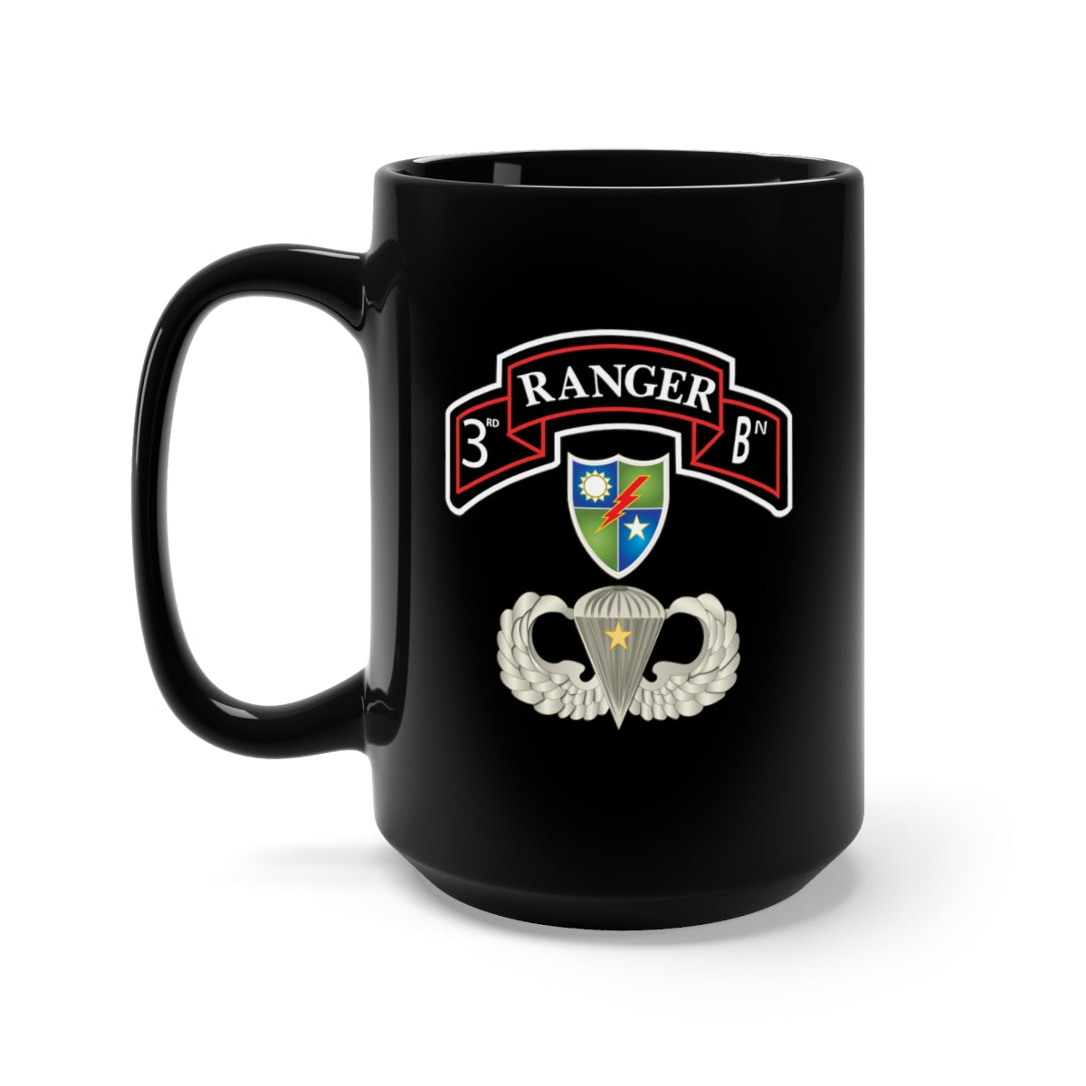 Black Mug 15oz - Army - 3rd Rgr Bn with DUI - Basic Airborne w Combat Jump Star X 300