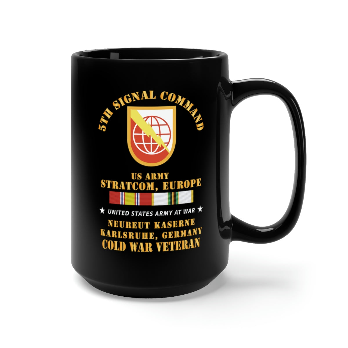 Black Mug 15oz - Army - 5th Signal Command - SSI, USA STRATCOM, EUR, Karlsruhe, Germany w COLD SVC X 300