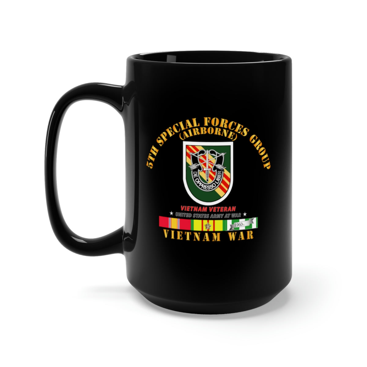 Black Mug 15oz - Army - 5th Special Forces Group w Flash VN SVC