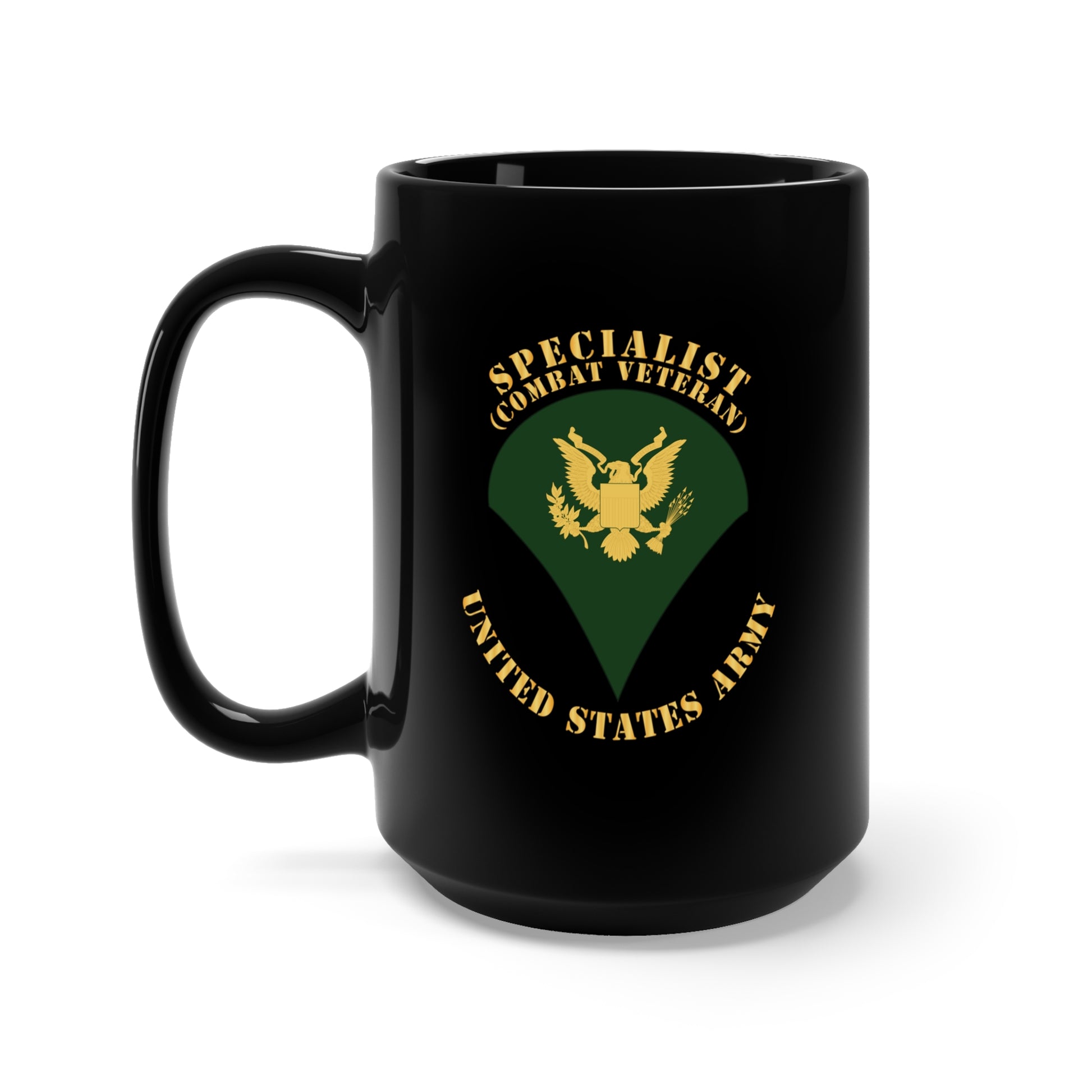 Black Mug 15oz - Army - Specialist - SP4 - Combat Veteran - Flat X 300
