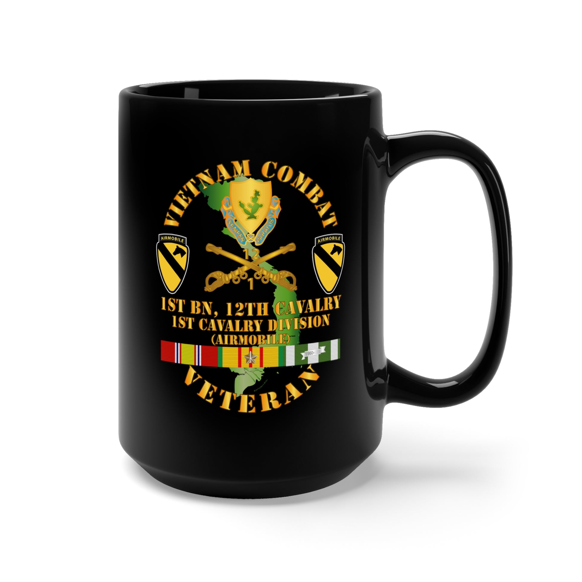 Black Mug 15oz - Army - Vietnam Combat Cavalry Veteran w 1st Bn - 12th Cav COA - 1st Cav Div X 300