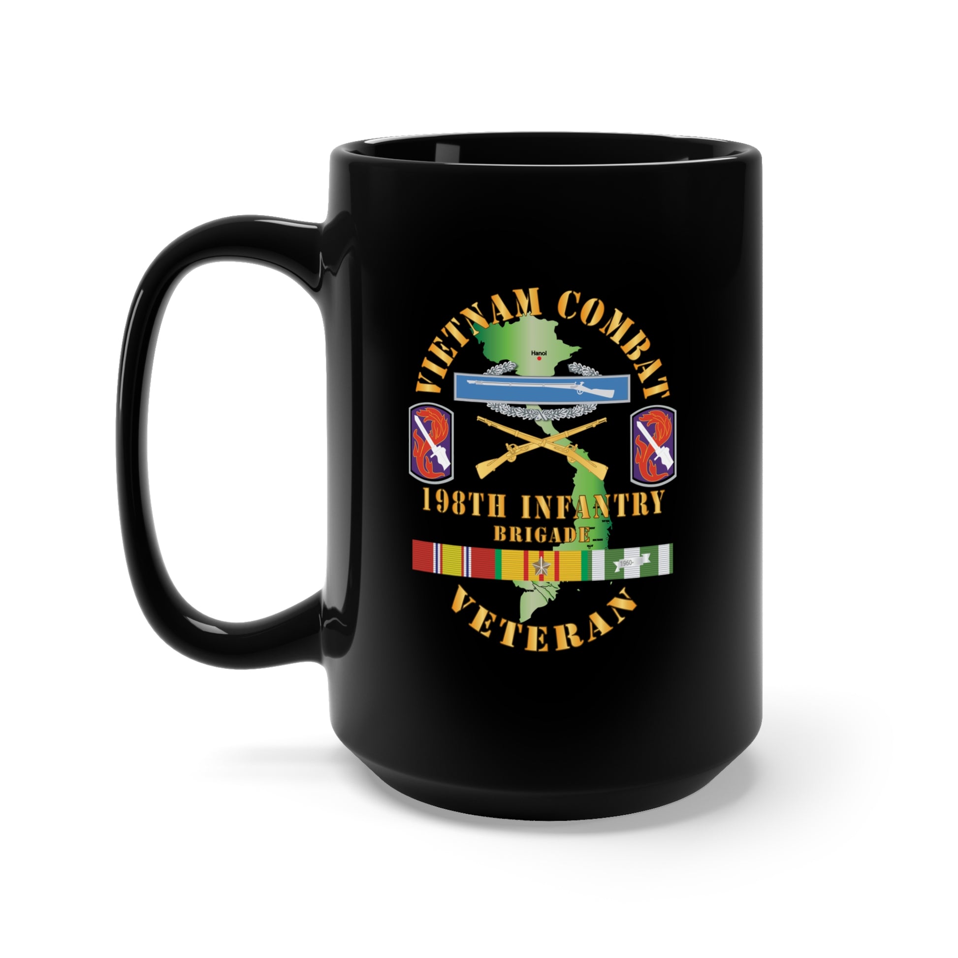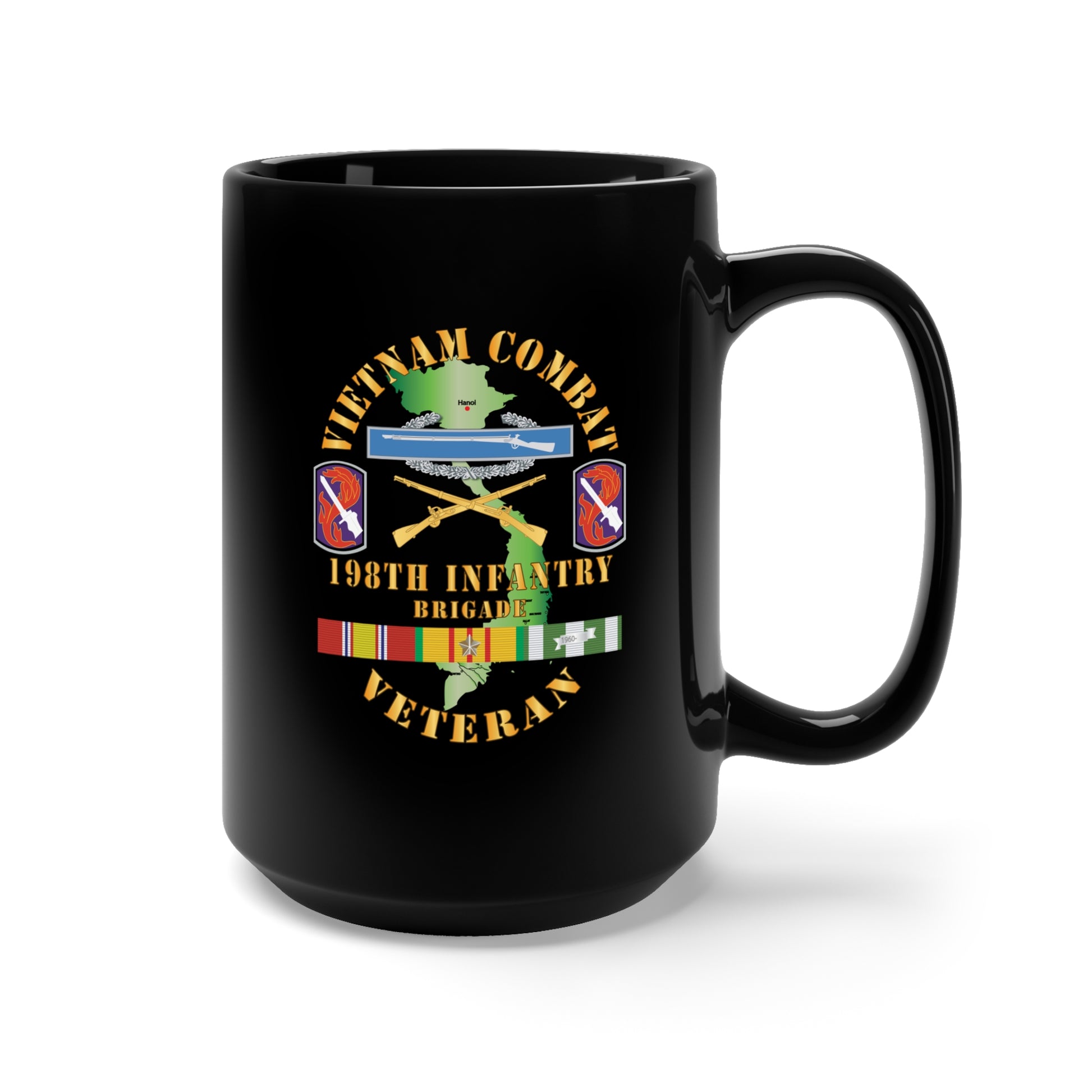 Black Mug 15oz - Army - Vietnam Combat Infantry Veteran w 198th Inf Bde SSI X 300