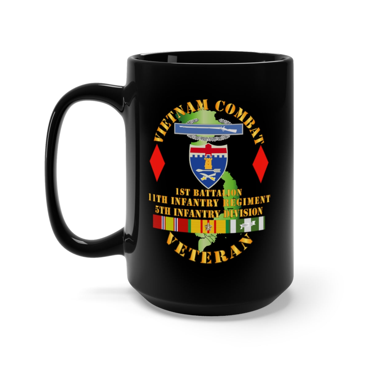 Black Mug 15oz - Army - Vietnam Combat Vet - 1st Bn 11th Infantry - 5th Inf Div SSI