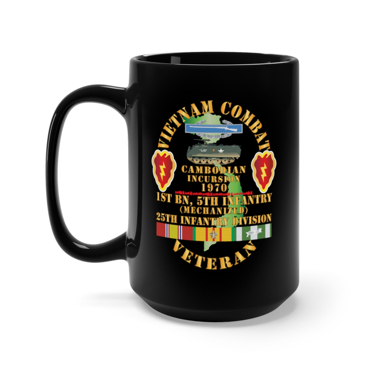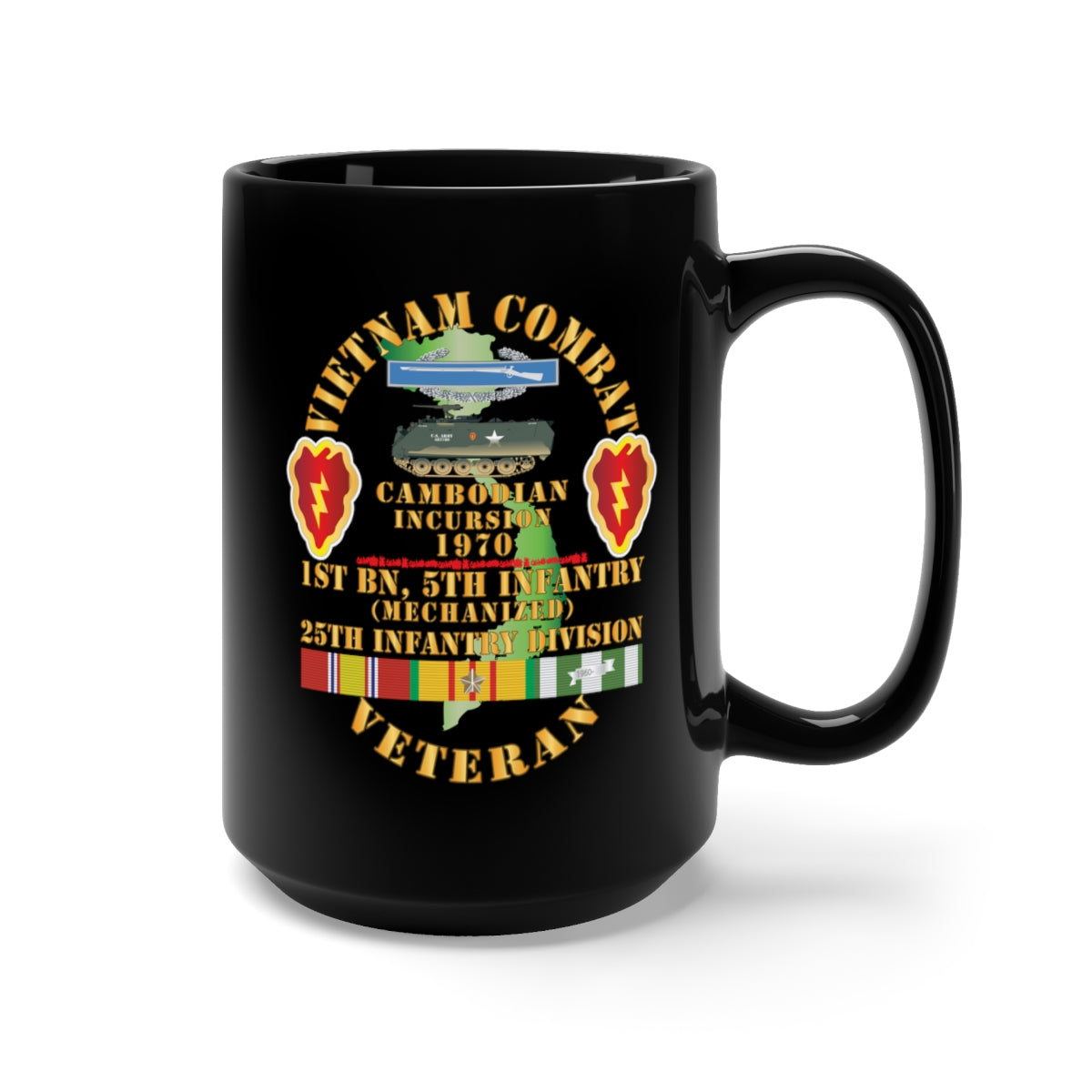 Black Mug 15oz - Army - Vietnam Combat Vet w 1st Bn 5th Inf - 25th Inf Div - Cambodian Incursion 1970 w VN SVC X 300