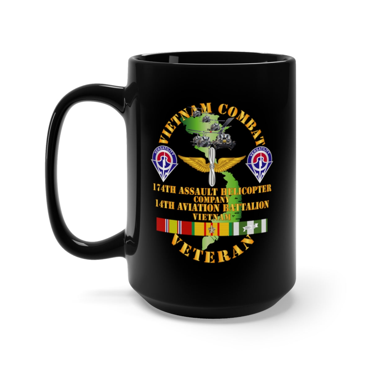 Black Mug 15oz - Army - Vietnam Combat Veteran - 174th AHC w 14th Avn Bn