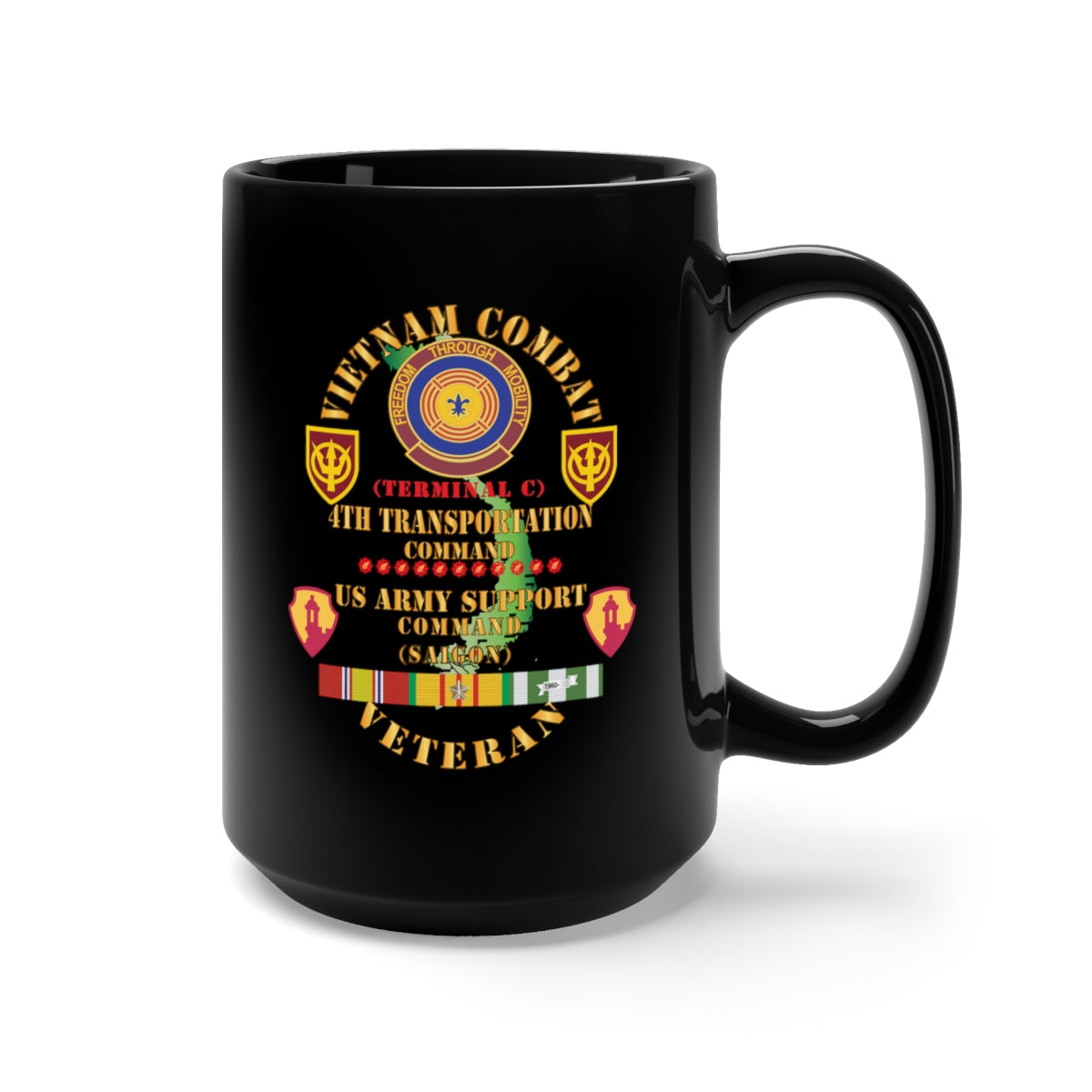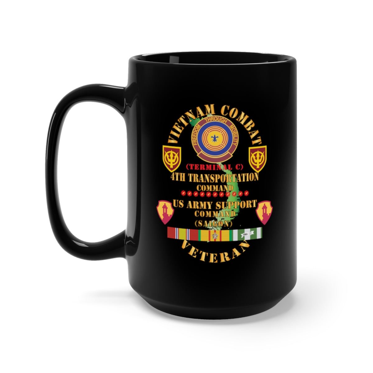 Black Mug 15oz - Army - Vietnam Combat Veteran w 4th Transportation Command, US Army Support Cmd Saigon w VN SVC X 300