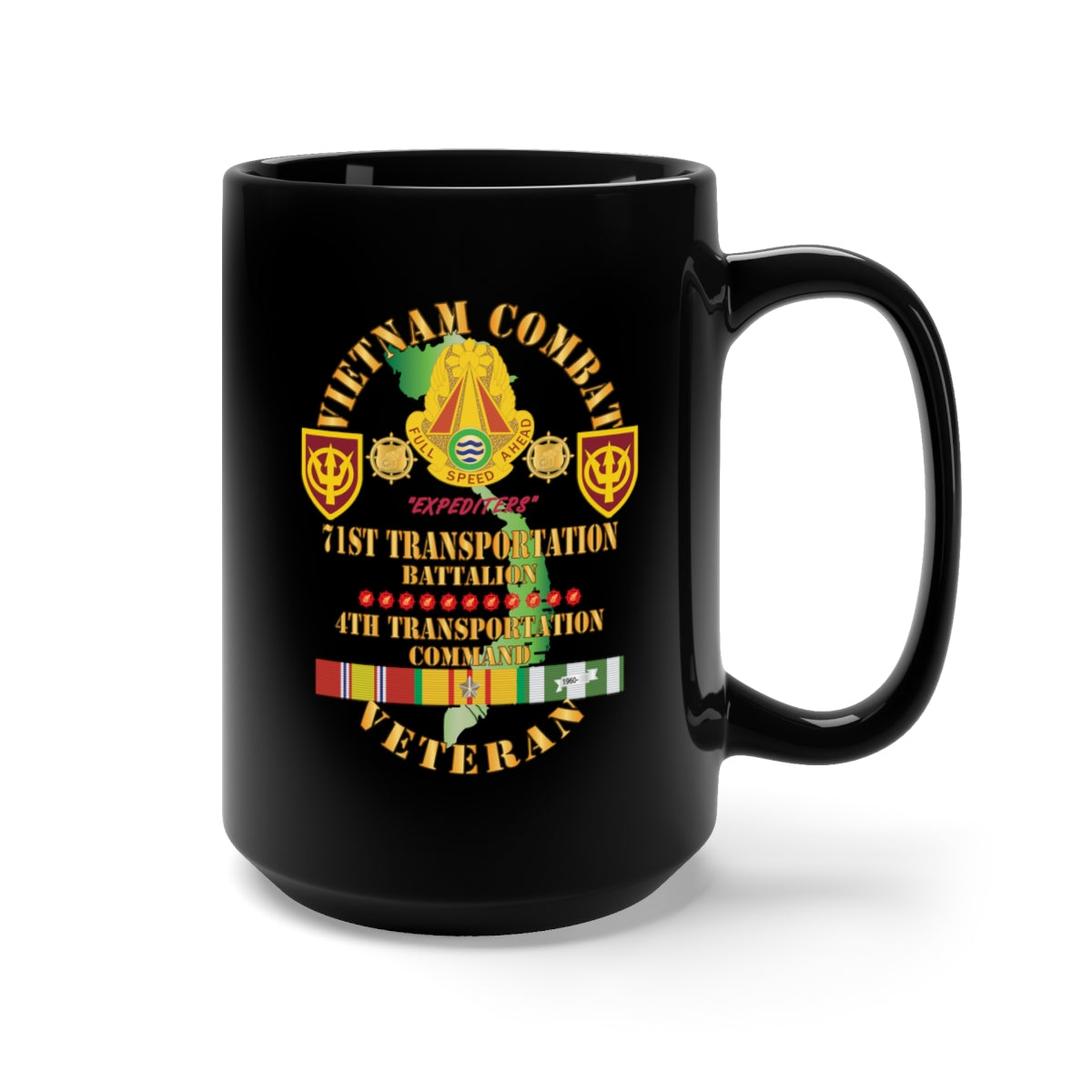 Black Mug 15oz - Army - Vietnam Combat Veteran w 71st Transportation Bn, 4th Trans Command w VN SVC X 300