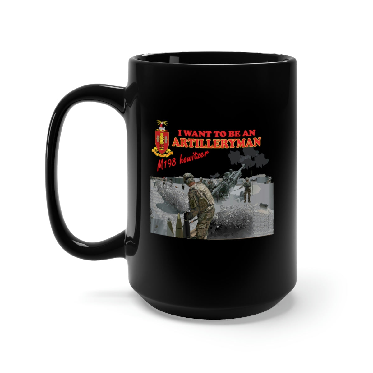 Black Mug 15oz - Artillery - M198 Howitzer - I want to be an Artilleryman