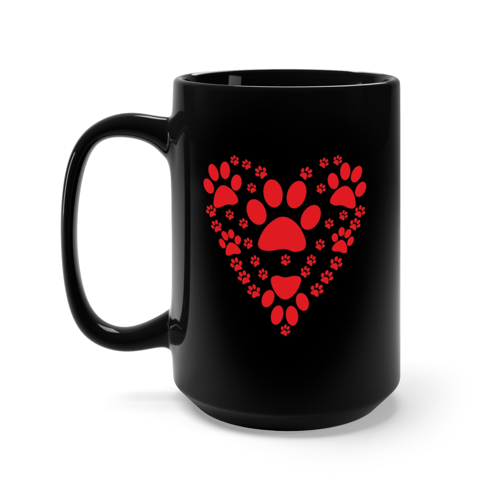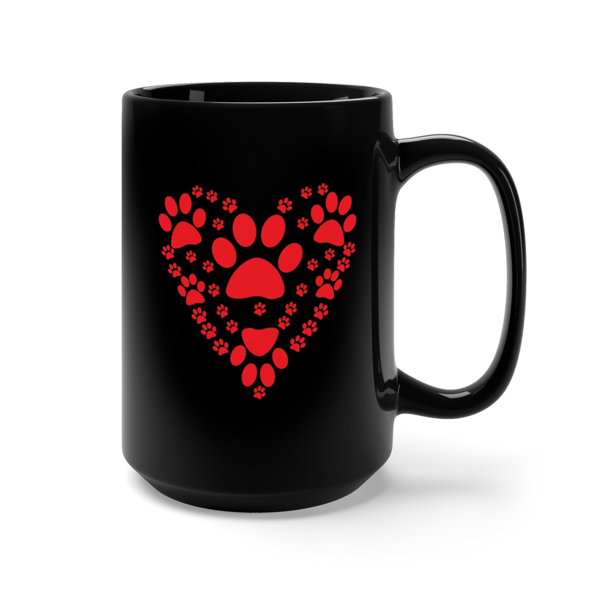 Black Mug 15oz - Big Heart - Made w Dog Paw Prints X 300