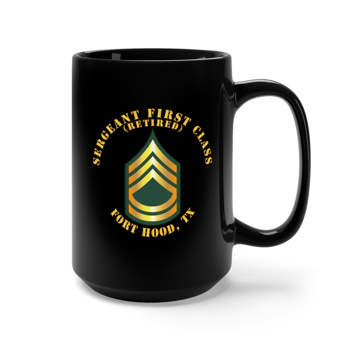 Black Mug 15oz - Sergeant First Class - SFC - Retired - Fort Hood, TX