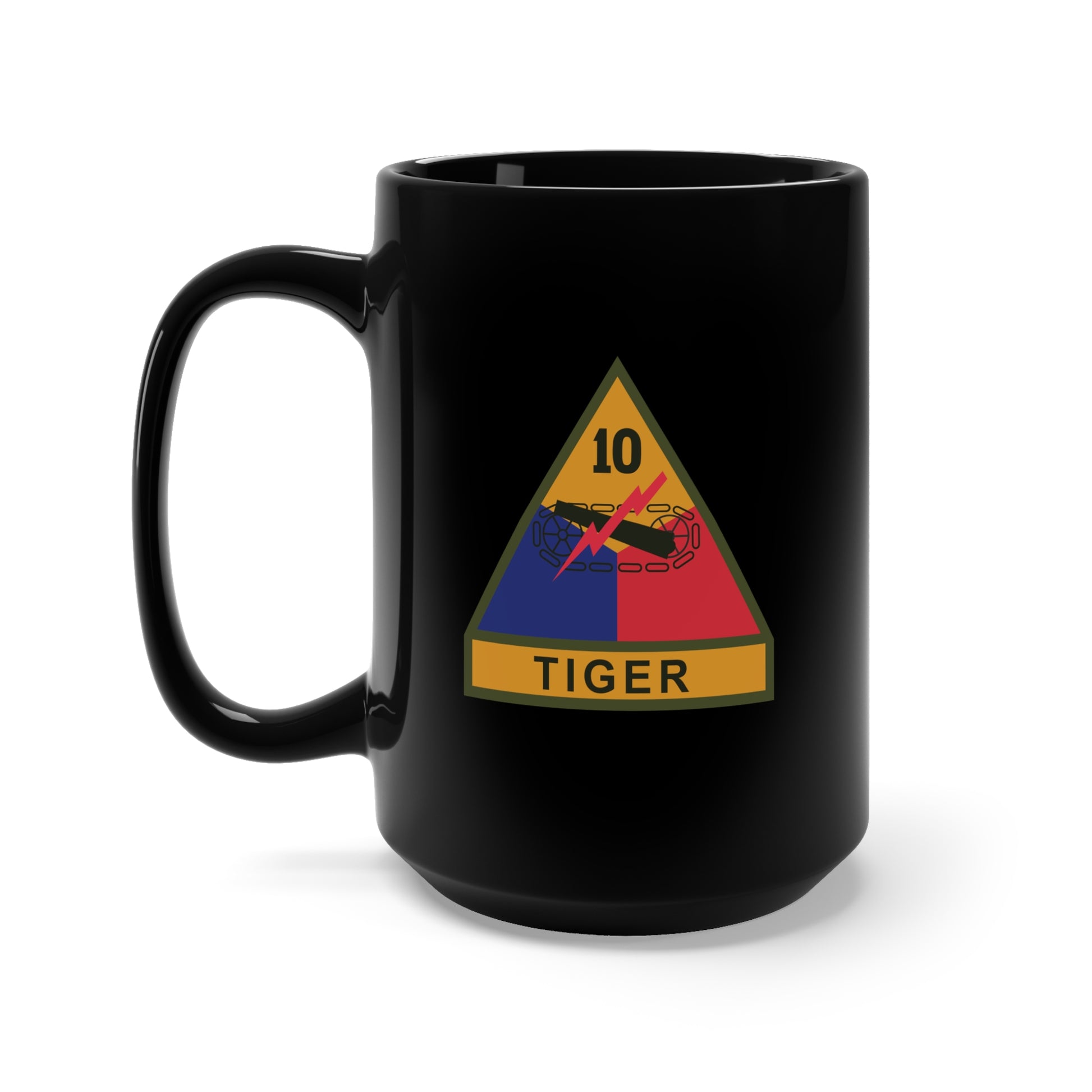 Black Mug 15oz - SSI - 10th Armored Division w Name Tape X 300