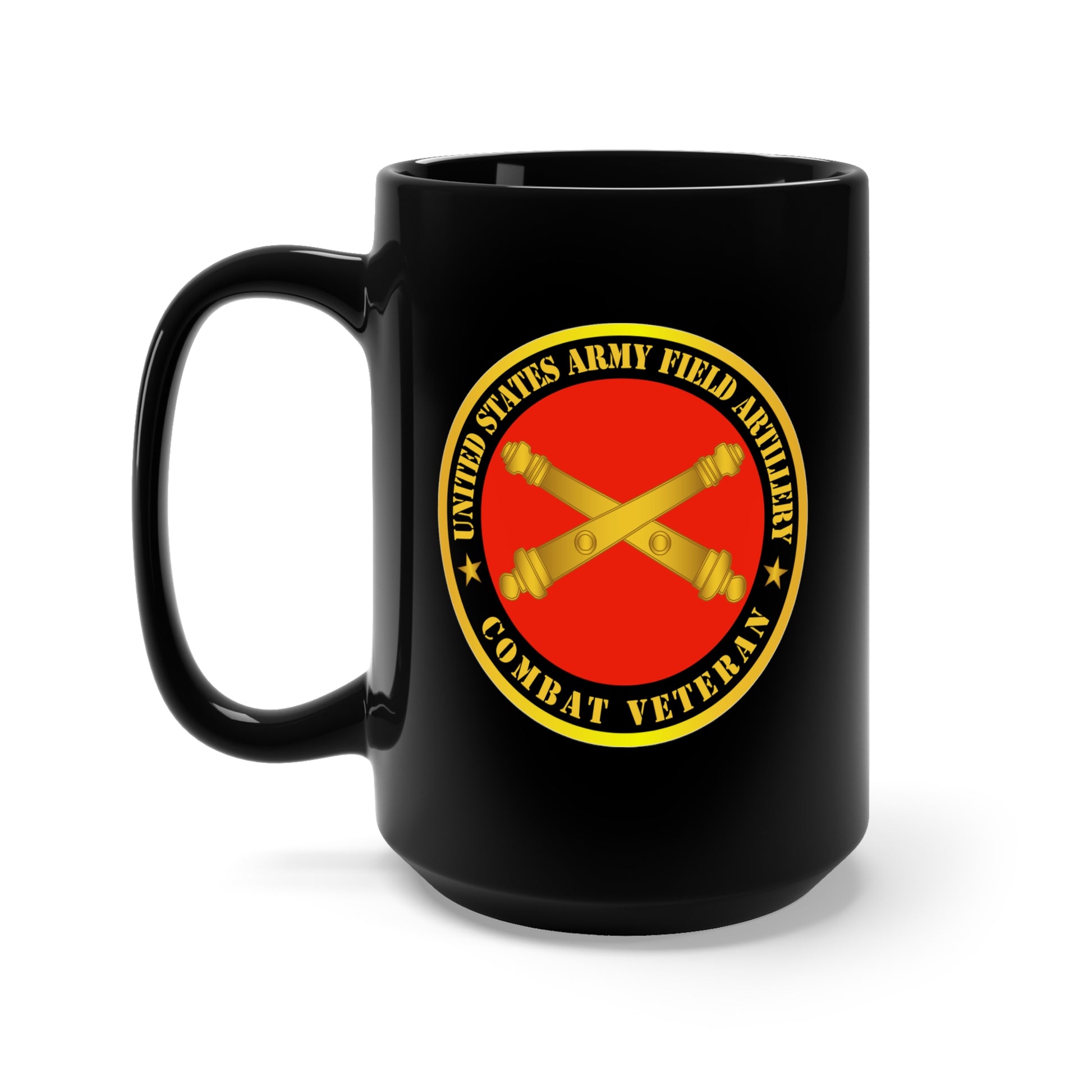 Black Mug 15oz - US Army Field Artillery Combat Veteran w Branch