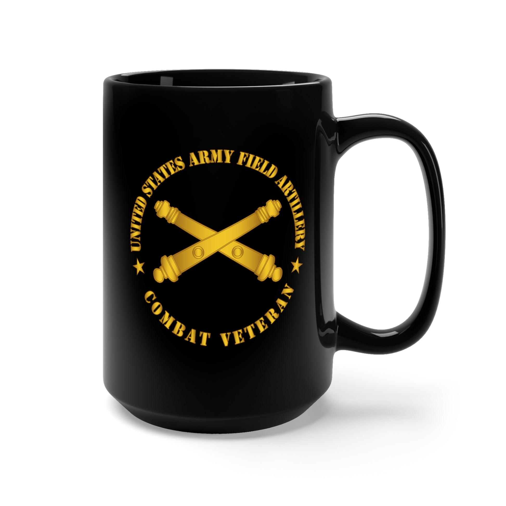 Black Mug 15oz - US Army Field Artillery Combat Veteran w Branch wo Txt