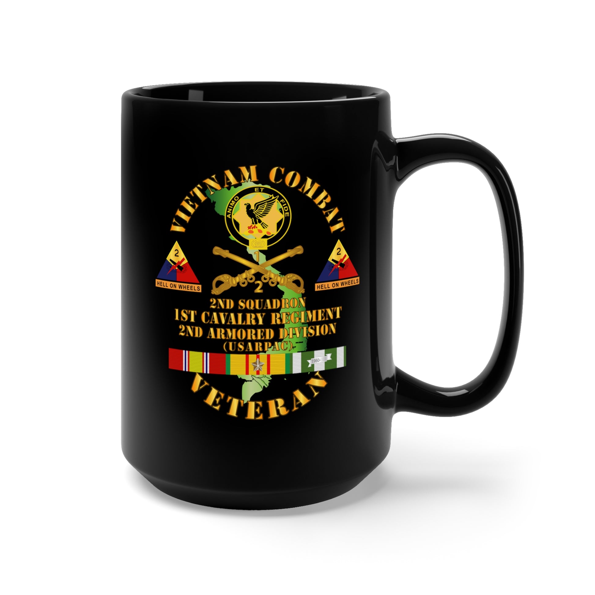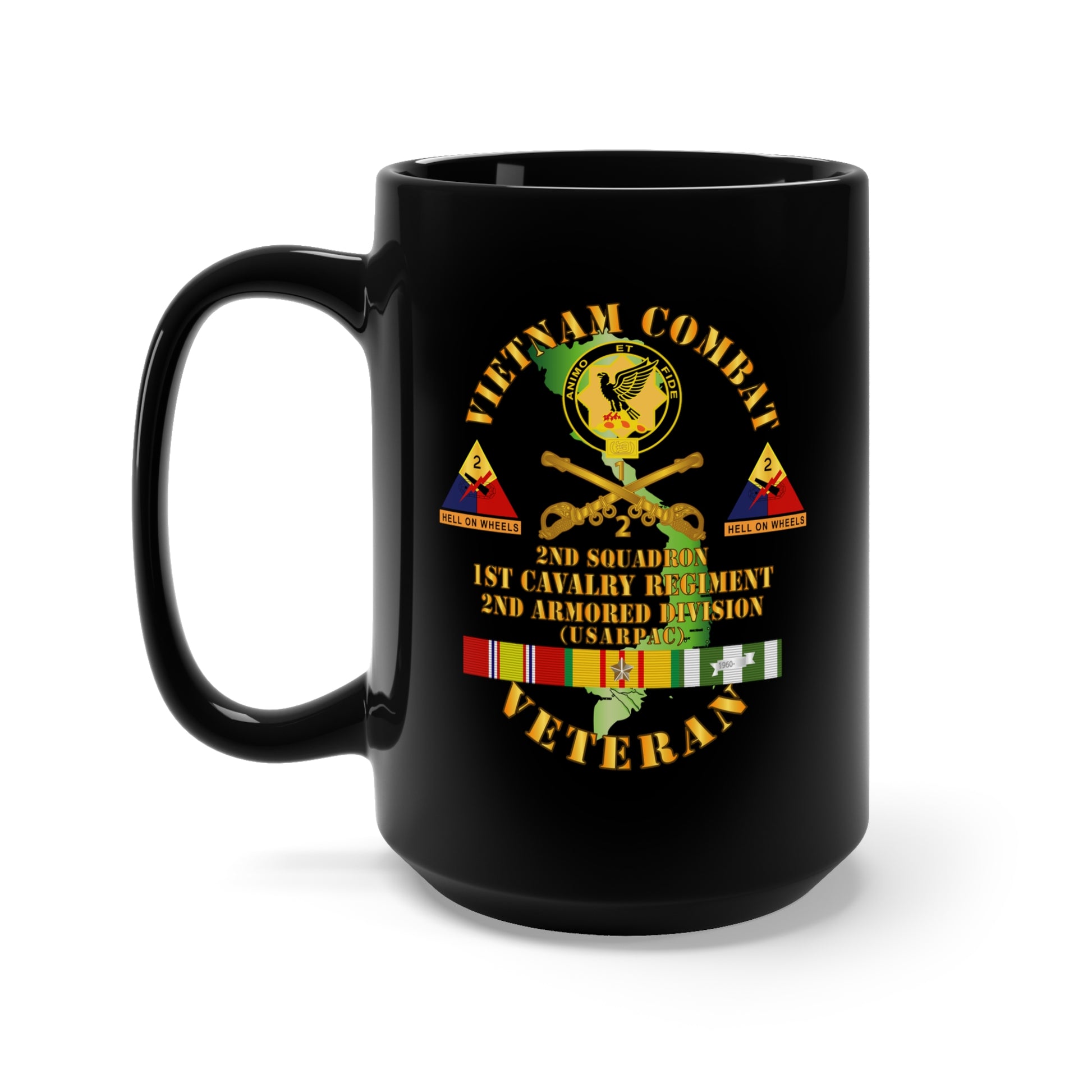 Black Mug 15oz - Vietnam Combat Veteran - 2nd Squadron, 1st Cav Regt - 2nd Armor Div