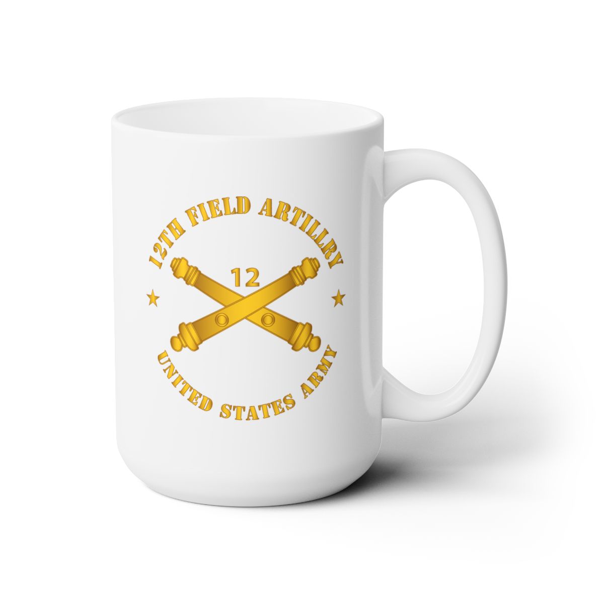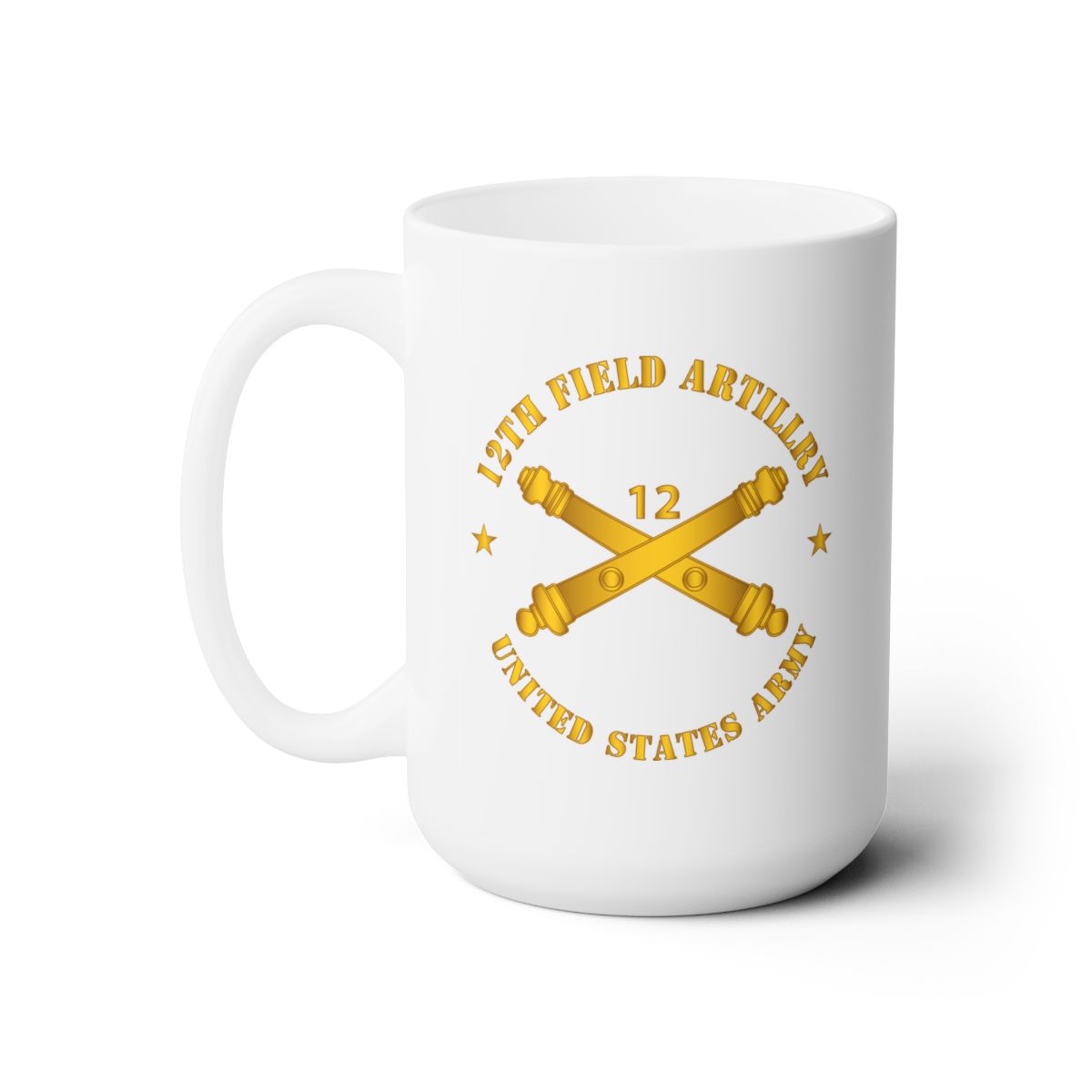 White Ceramic Mug 15oz - Army - 12th Artillery Regiment w Branch - US Army