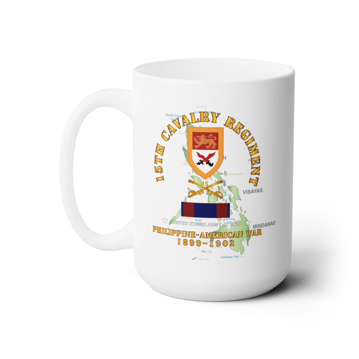 White Ceramic Mug 15oz - Army - 15th Cavalry Regiment - Phil AMerican War w PHIL WAR SVC