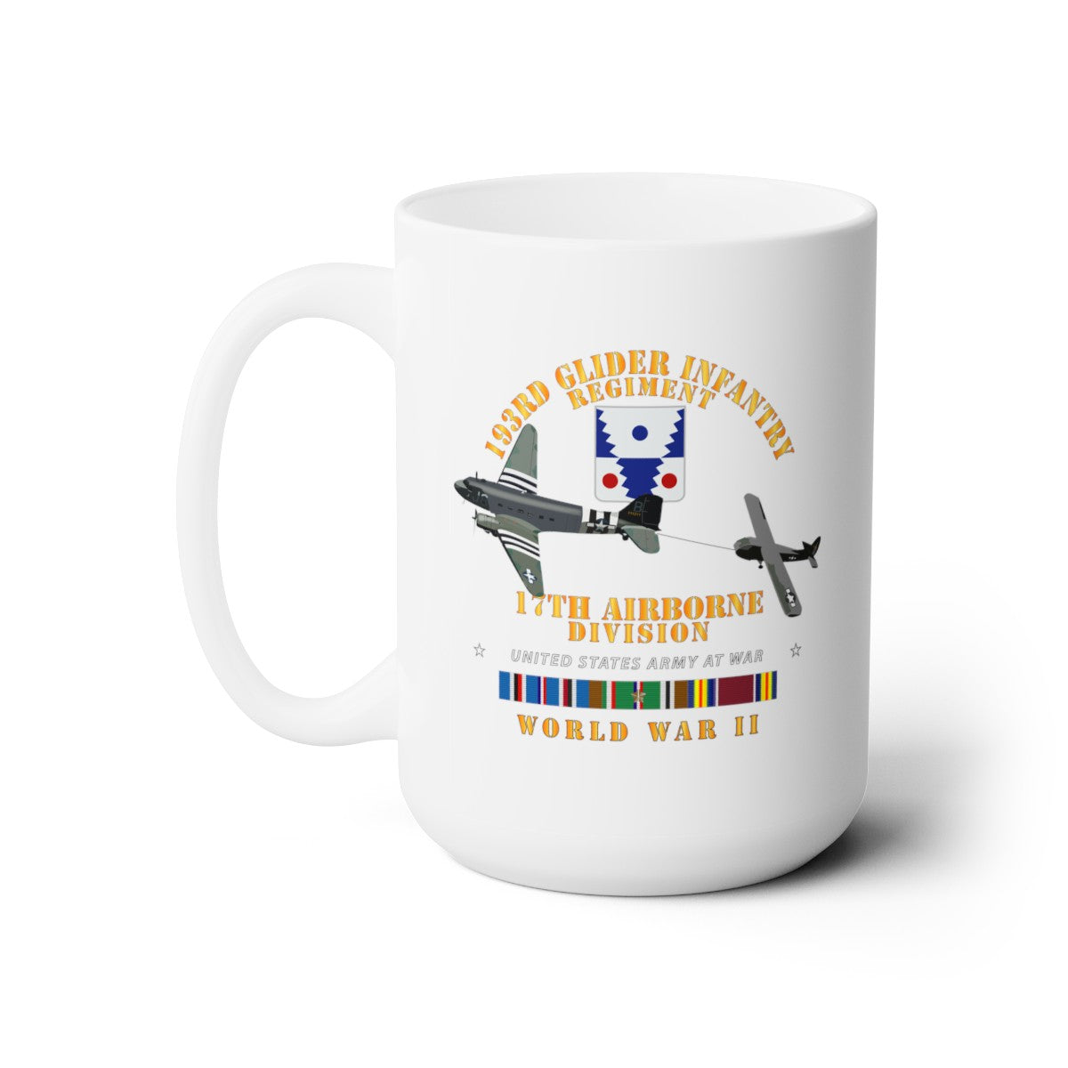 White Ceramic Mug 15oz - Army - 193rd Glider Infantry Regiment w Towed Glider w WWII w EUR SVC