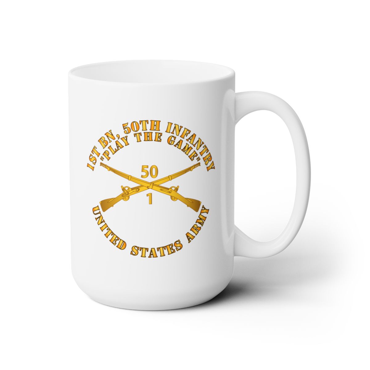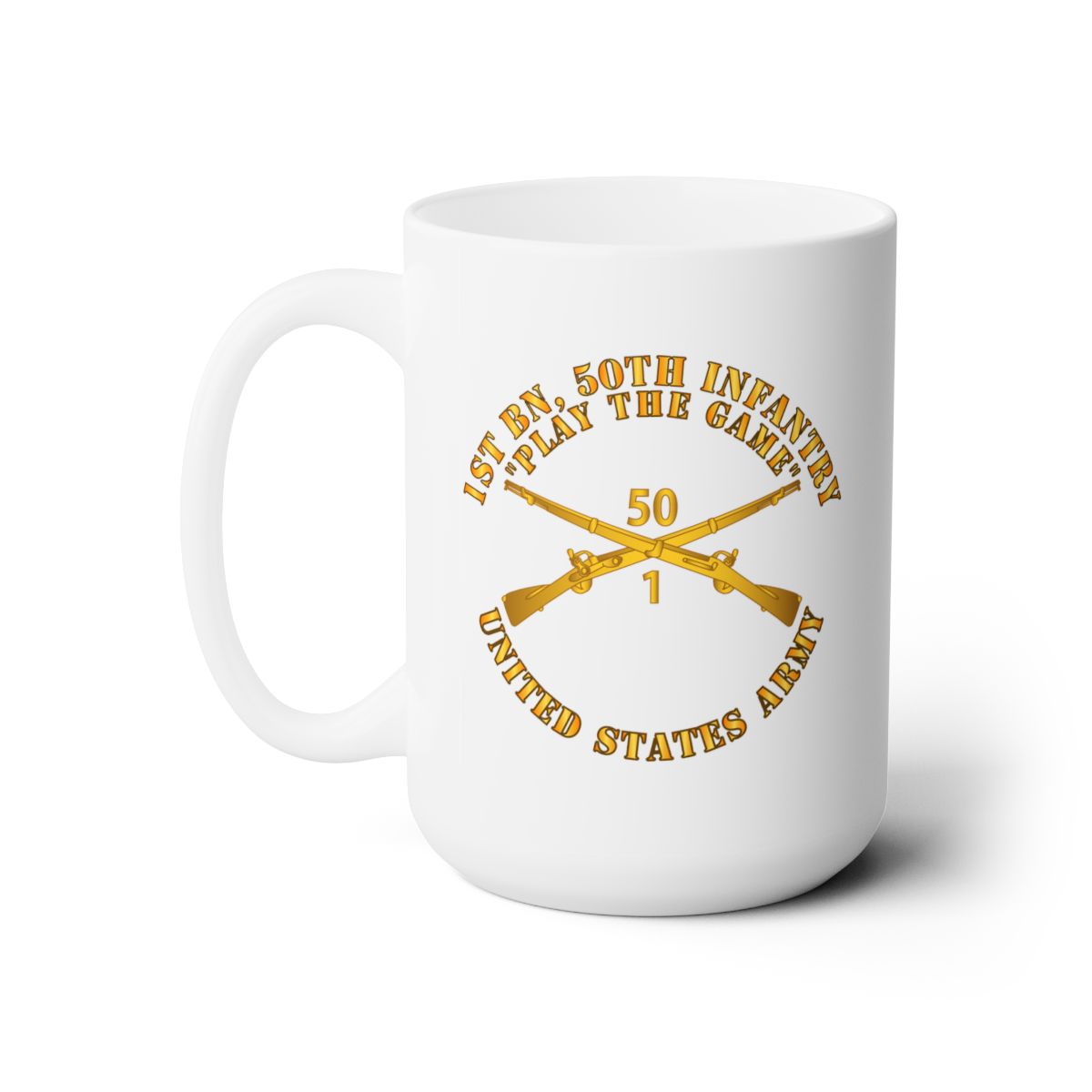 White Ceramic Mug 15oz - Army - 1st Bn, 50th Infantry - Play the Game w Infantry Br