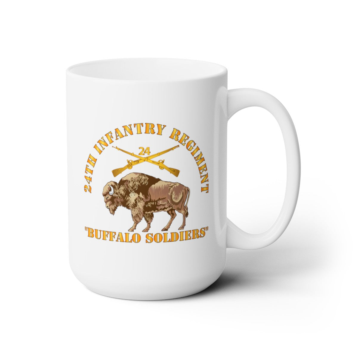 White Ceramic Mug 15oz - Army - 24th Infantry Regiment - Buffalo Soldiers w 24th Inf Branch Insignia