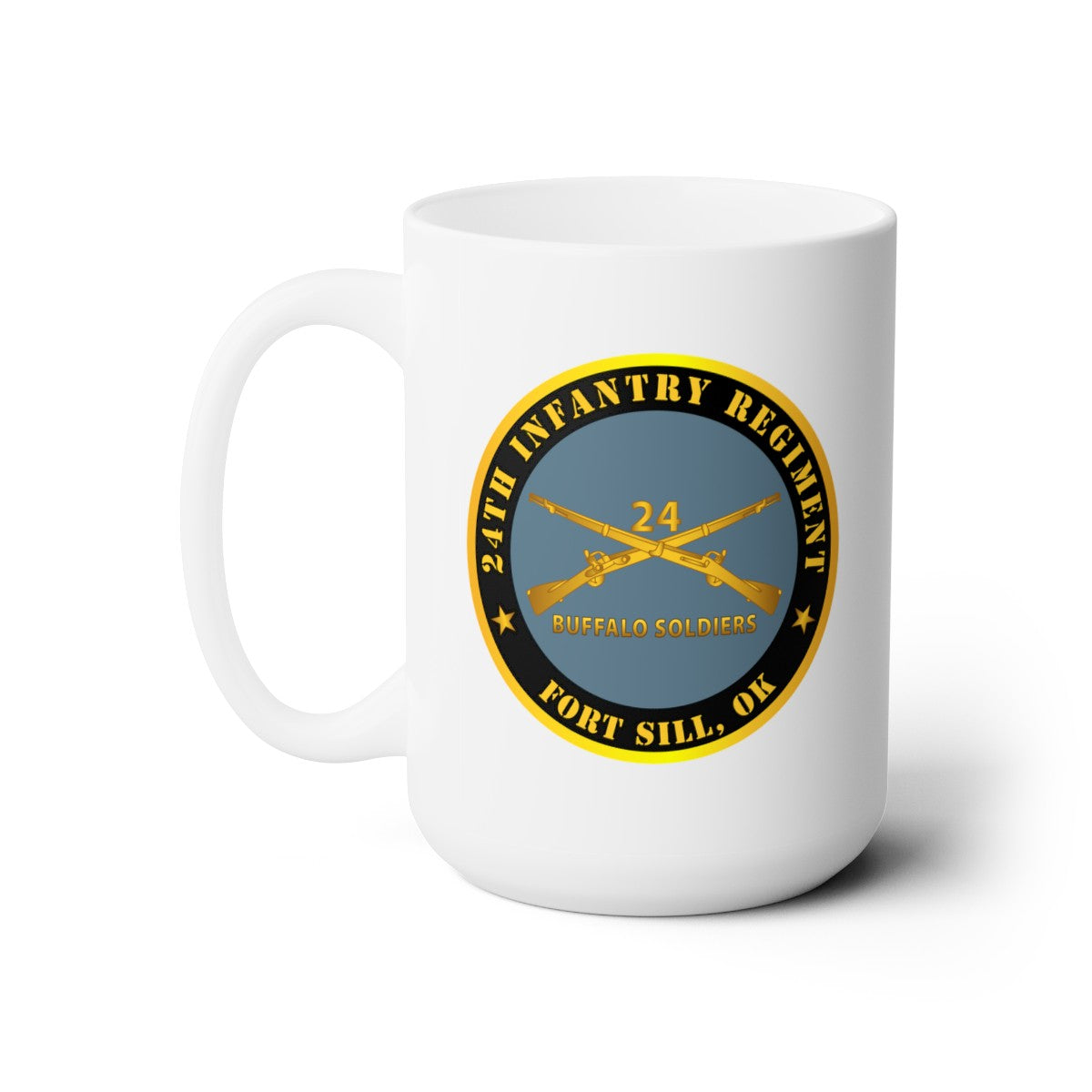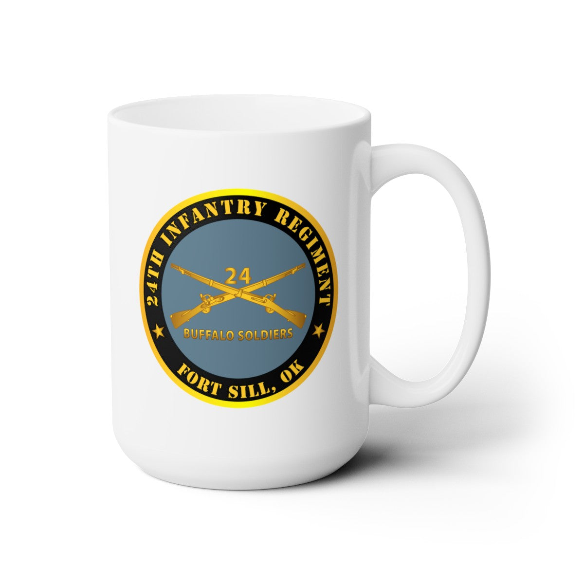 White Ceramic Mug 15oz - Army - 24th Infantry Regiment - Fort Sill, OK - Buffalo Soldiers w Inf Branch