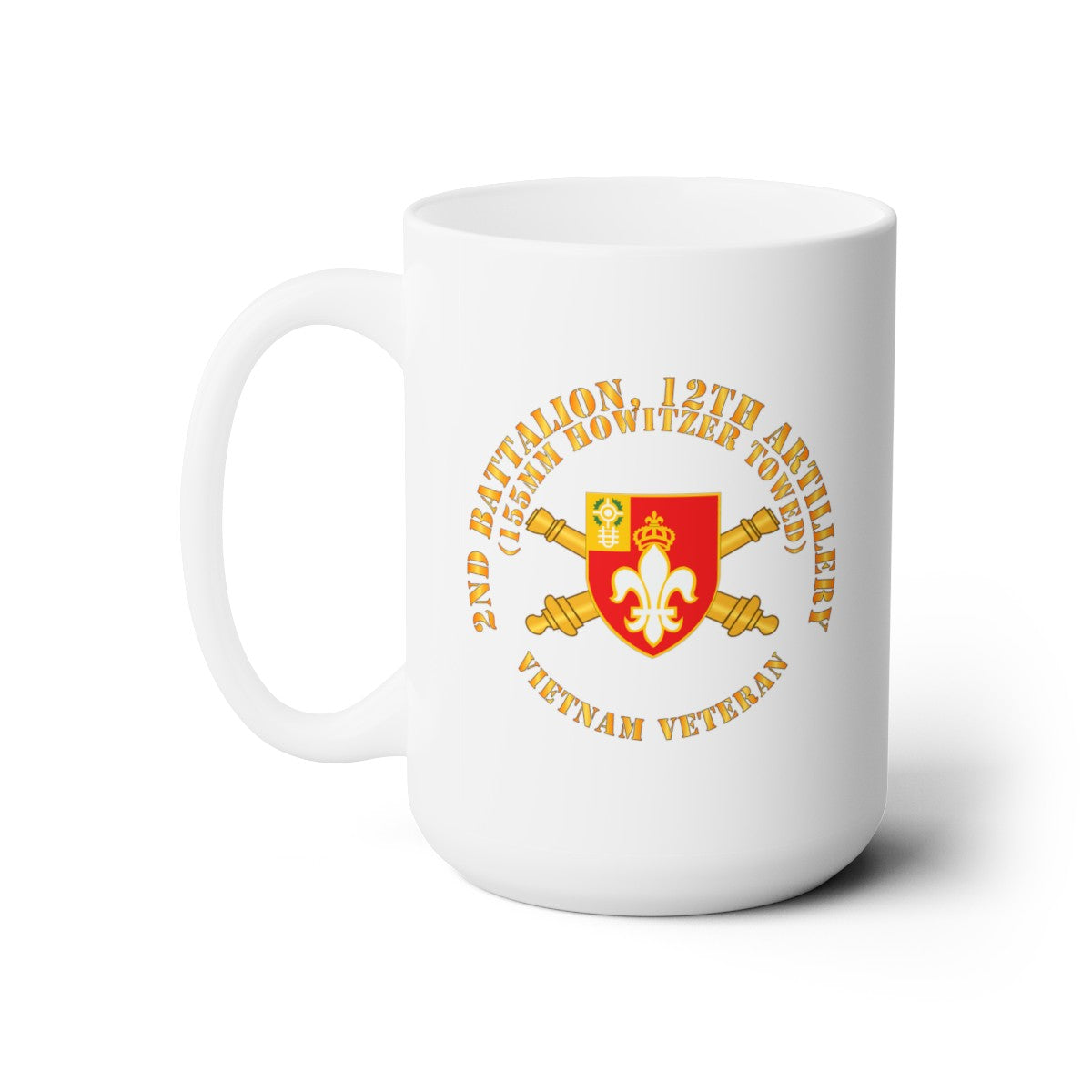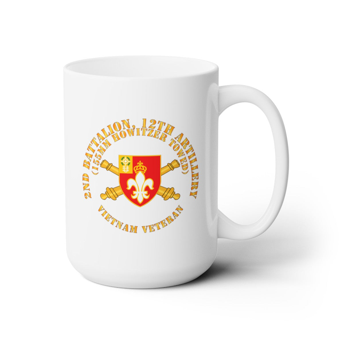 White Ceramic Mug 15oz - Army - 2nd Bn 12th Artillery - 155MM Towed - Vietnam Vet w DUI w Branch