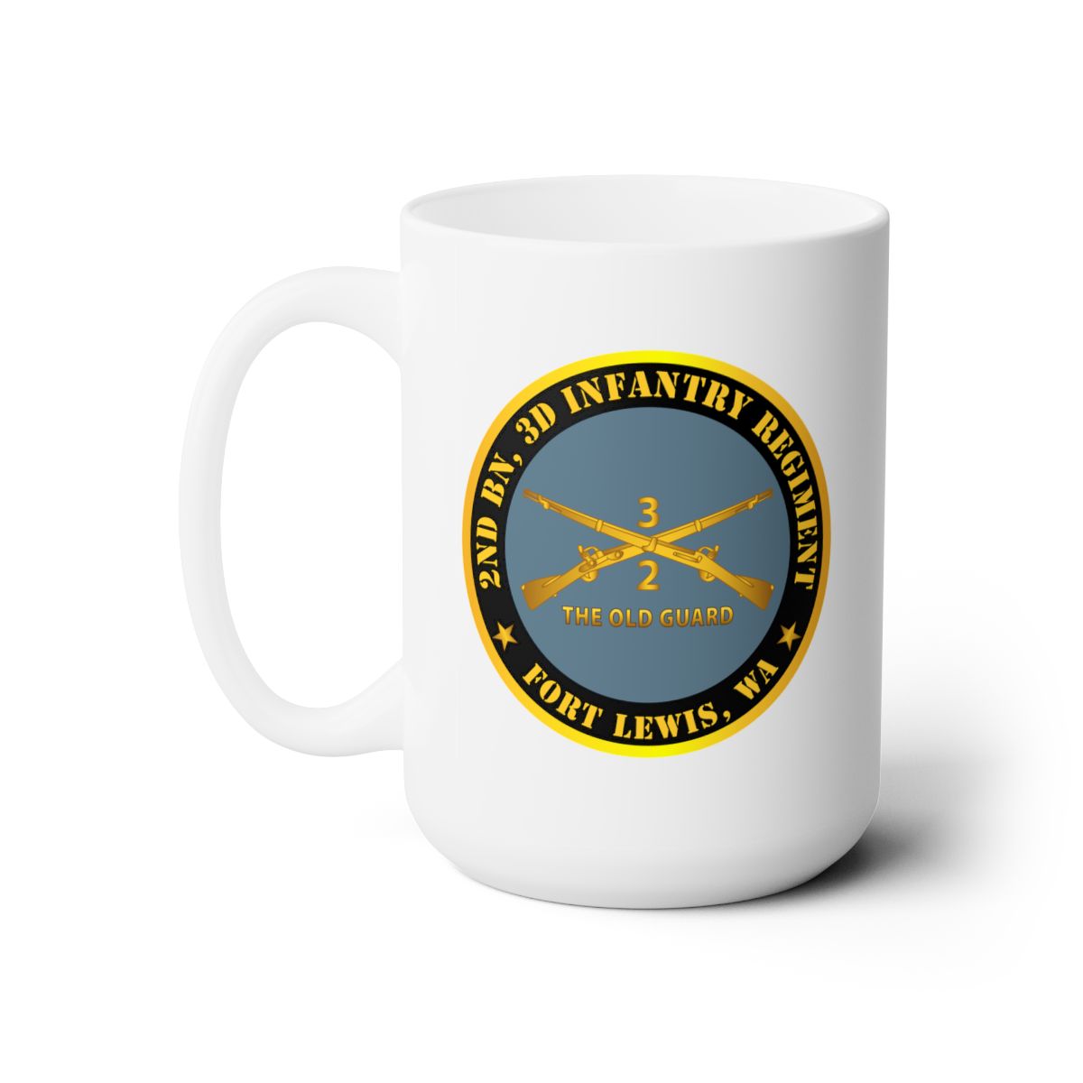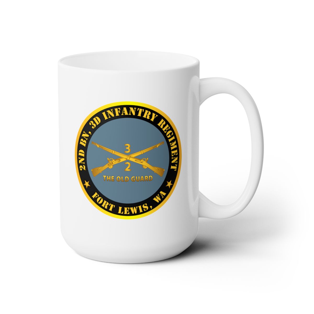 White Ceramic Mug 15oz - Army - 2nd Bn 3d Infantry Regiment - Ft Lewis, WA - The Old Guard w Inf Branch