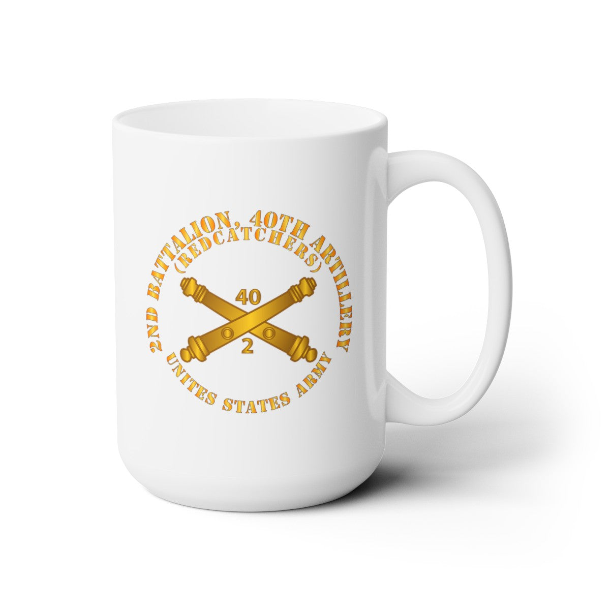 White Ceramic Mug 15oz - Army - 2nd Bn 40th Artillery - Redcatchers - US Army w DUI w Branch
