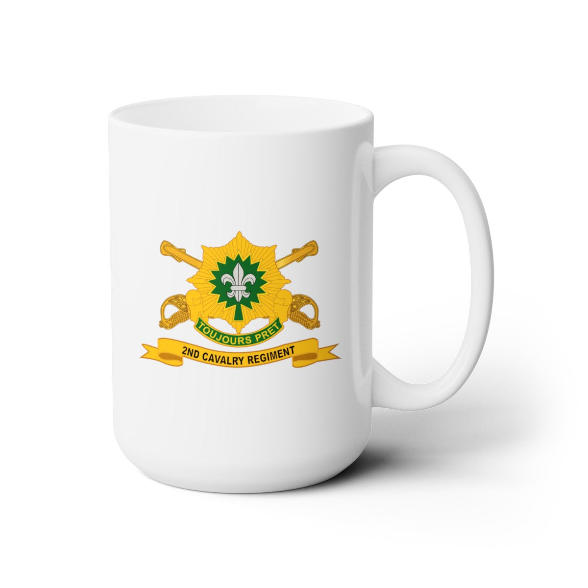 White Ceramic Mug 15oz - Army - 2nd Cavalry Regiment w Br - Ribbon
