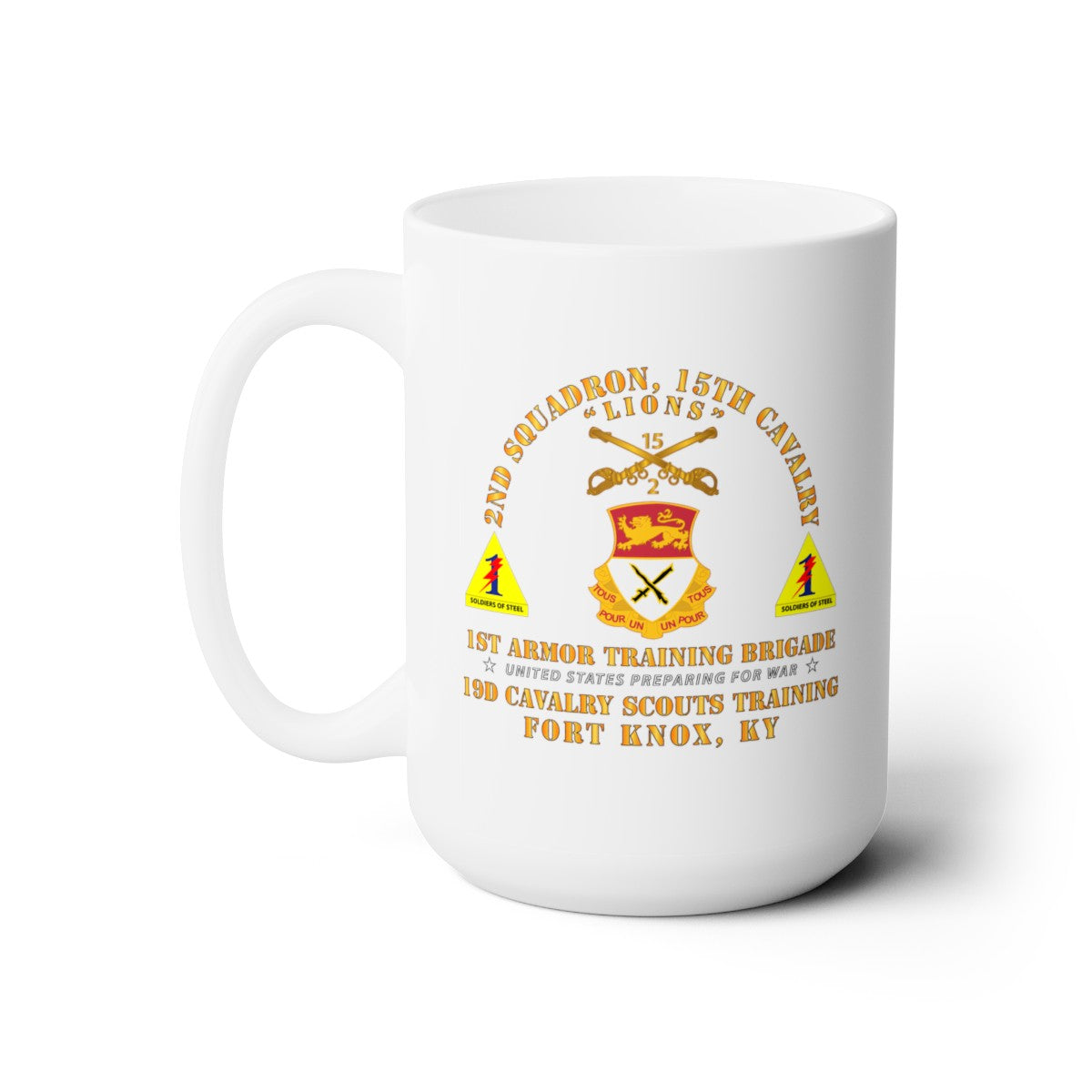 White Ceramic Mug 15oz - Army - 2nd Squadron, 15th Cavalry (19D) - 1st Ar Tng Bde Ft Knox, KY