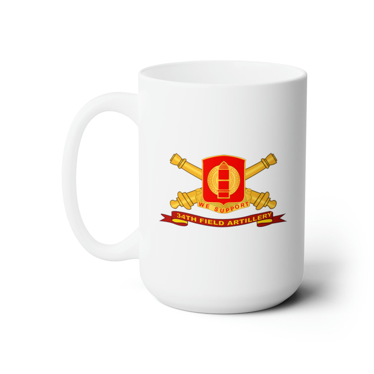 White Ceramic Mug 15oz - Army - 34th Field Artillery w Br - Ribbon