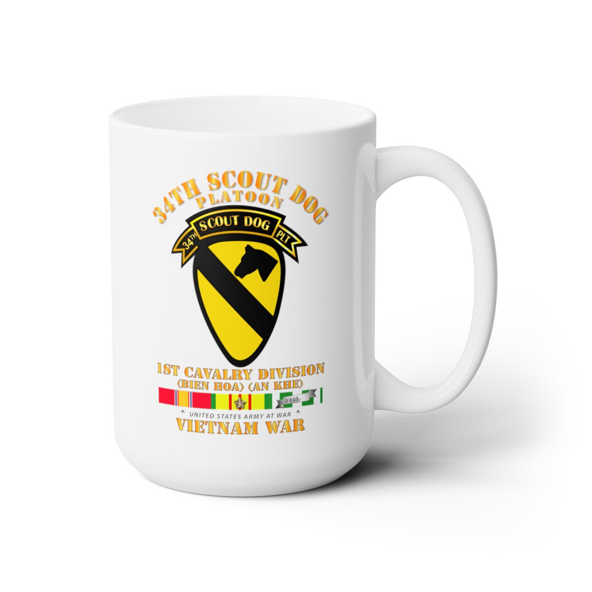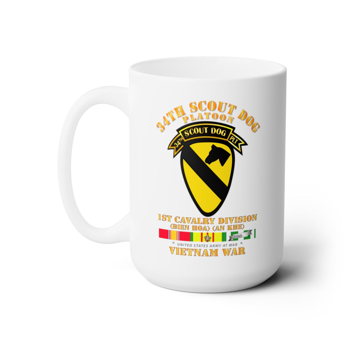 White Ceramic Mug 15oz - Army - 34th Scout Dog Platoon 1st Cav w Tab - VN SVC