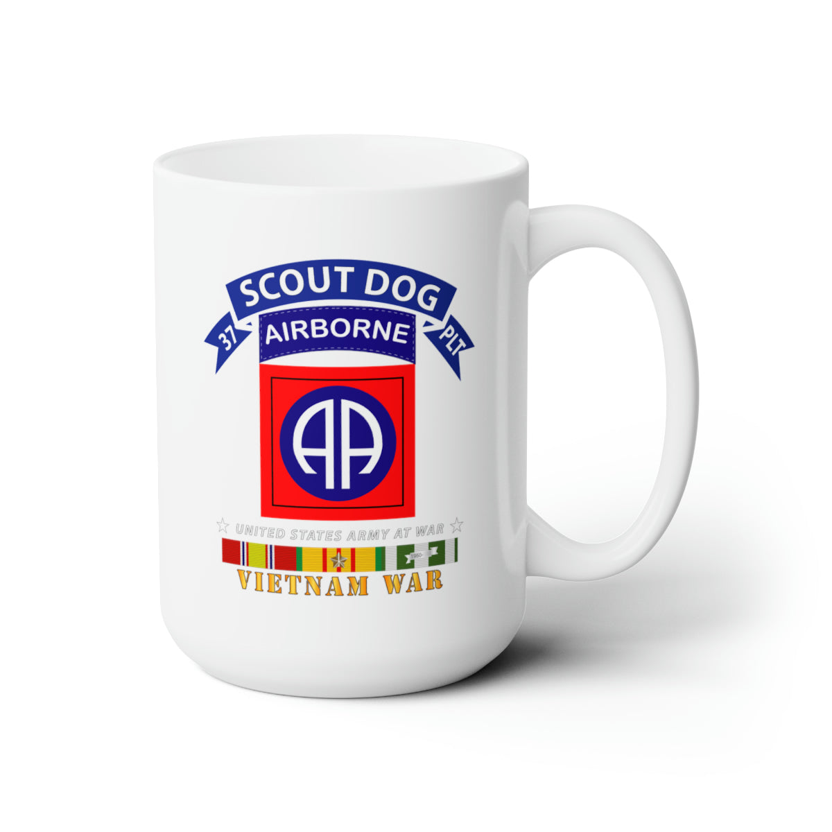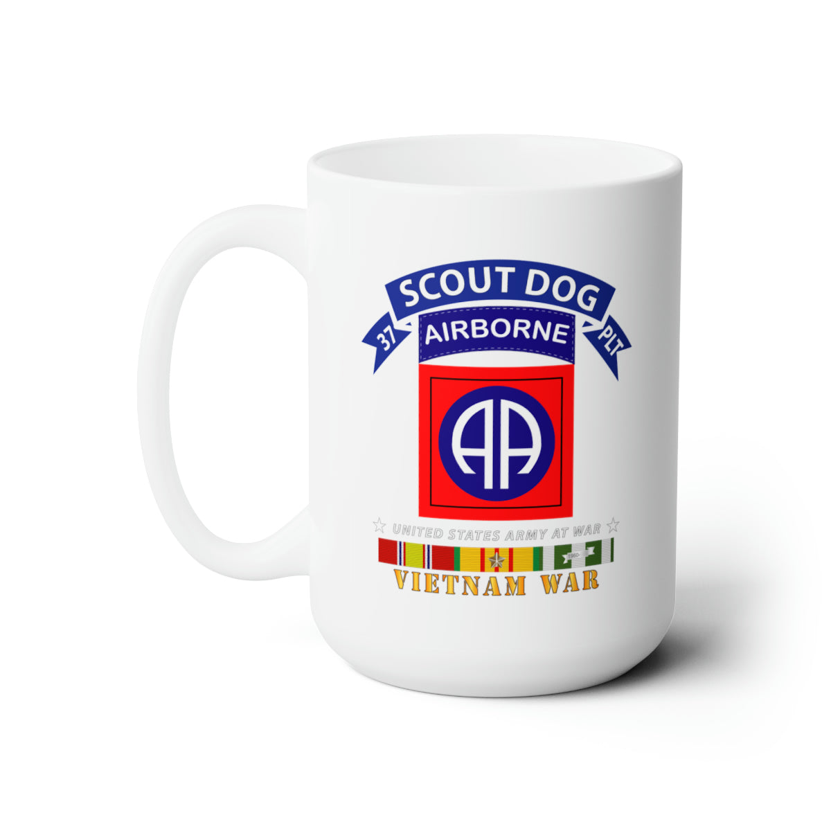 White Ceramic Mug 15oz - Army - 37th Scout Dog Platoon - 82nd Airborne Div w VN SVC