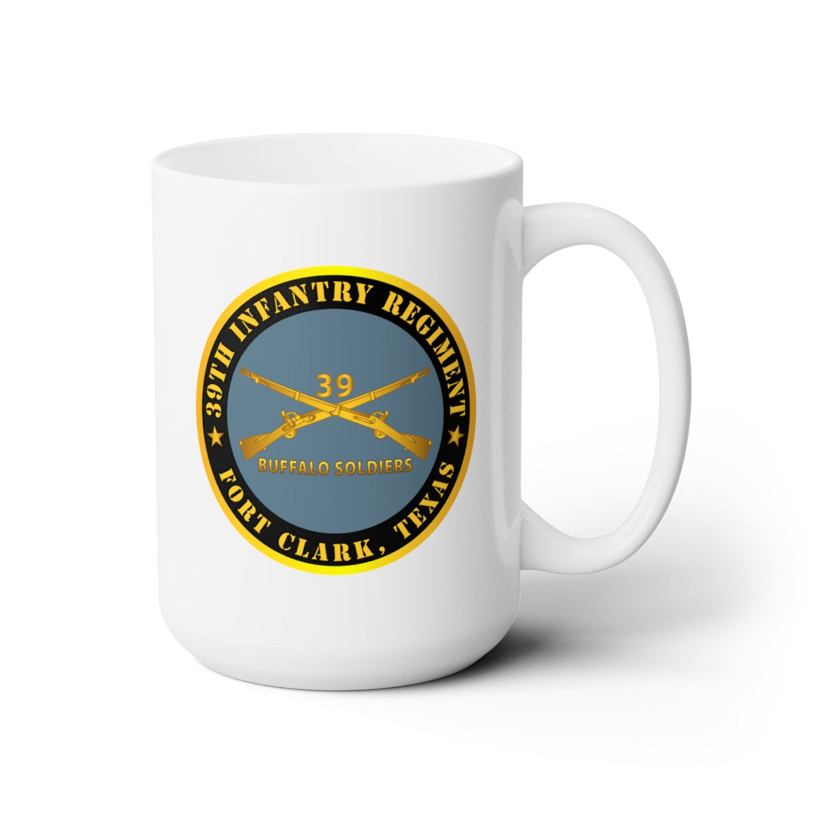 White Ceramic Mug 15oz - Army - 39th Infantry Regiment - Buffalo Soldiers - Fort Clark, TX w Inf Branch